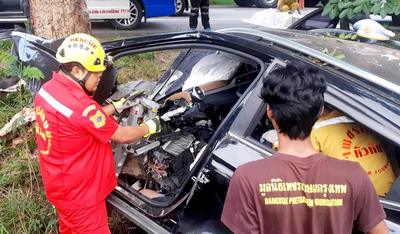 เมื่อเวลา 06.00 น. วันที่ 5 ตุลาคม 62 ร.ต.อ.รณชัย ชอบค้า พนักงานสอบสวน สภ.หัวหิน จ.ประจวบคีรีขันธ์ รับแจ้งเกิดเหตุรถเก๋งชนต้นไม้ มีผู้บาดเจ็บติดอยู่ในรถหลายรายบนถนนบายพาส ชะอำ–ปราณบุรี ขาล่องใต้ หลัก กม.ที่ 27-28 หมู่ที่ 3 ต.หินเหล็กไฟ อ.หัวหิน จึงพร้อมด้วยหน่วยกู้ภัยมูลนิธิเพชรเกษมหัวหิน รุดไปยังที่เกิดเหตุ พบรถเก๋งยี่ห้อ MG สีดำ หมายเลขทะเบียน กต 1659 ชุมพร ด้านหน้าชนติดอัดกับต้นไม้ข้างทางพังยับเยิน