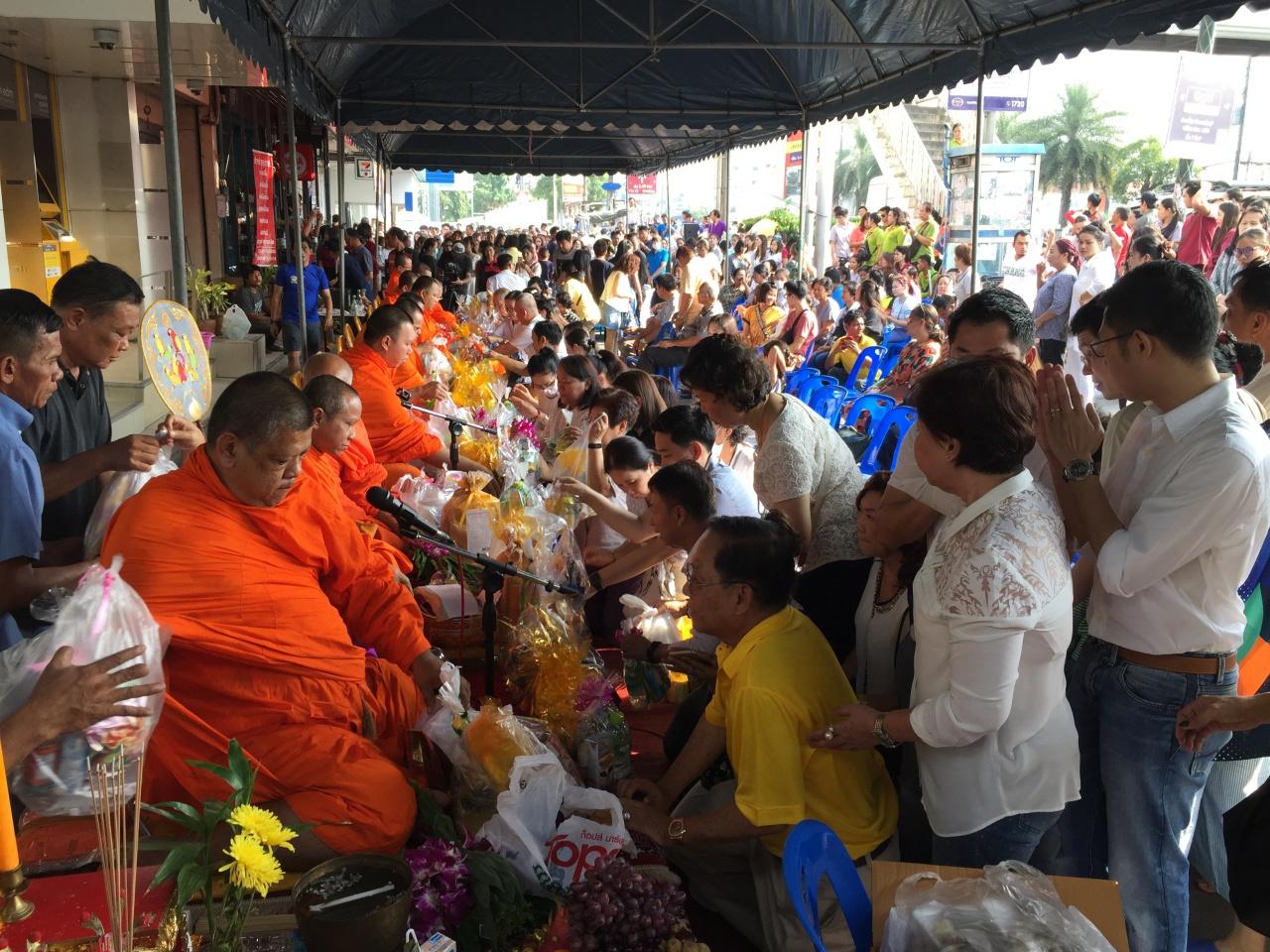 เมื่อวันที่ 5 ต.ค.2562 นายชูชาติ กอเจริญเกียรติ เจ้าของบริษัท ไทร์มาร์ทแอทแวนเทจ ทวีสิน จำกัด ต.ราชาเทวะ อ.บางพลี จ.สมุทรปราการ ที่อยู่ตรงข้ามที่เกิดเหตุ พร้อมด้วยประชาชนชาวกิ่งแก้ว พร้อมญาติผู้เสียชีวิต ร่วมกันจัดพิธีใส่บาตรเลี้ยงพระถวายภัตตาหารเช้าแด่พระภิกษุสงฆ์จำนวน 13 รูป และทำการแจกข้าวสารจำนวน 600 ถุง พร้อมเครื่องอุปโภคบริโภคอีกจำนวนมาก มาแจกจ่ายให้ประชาชน เพื่ออุทิศส่วนบุญส่วนกุศลให้กับผู้เสียชีวิตทั้ง 13 คน ที่บริเวณปากซอยกิ่งแก้ว 21 ต.ราชาเทวะ อ.บางพลี จ.สมุทรปราการ ซึ่งเป็นจุดที่เกิดเหตุ