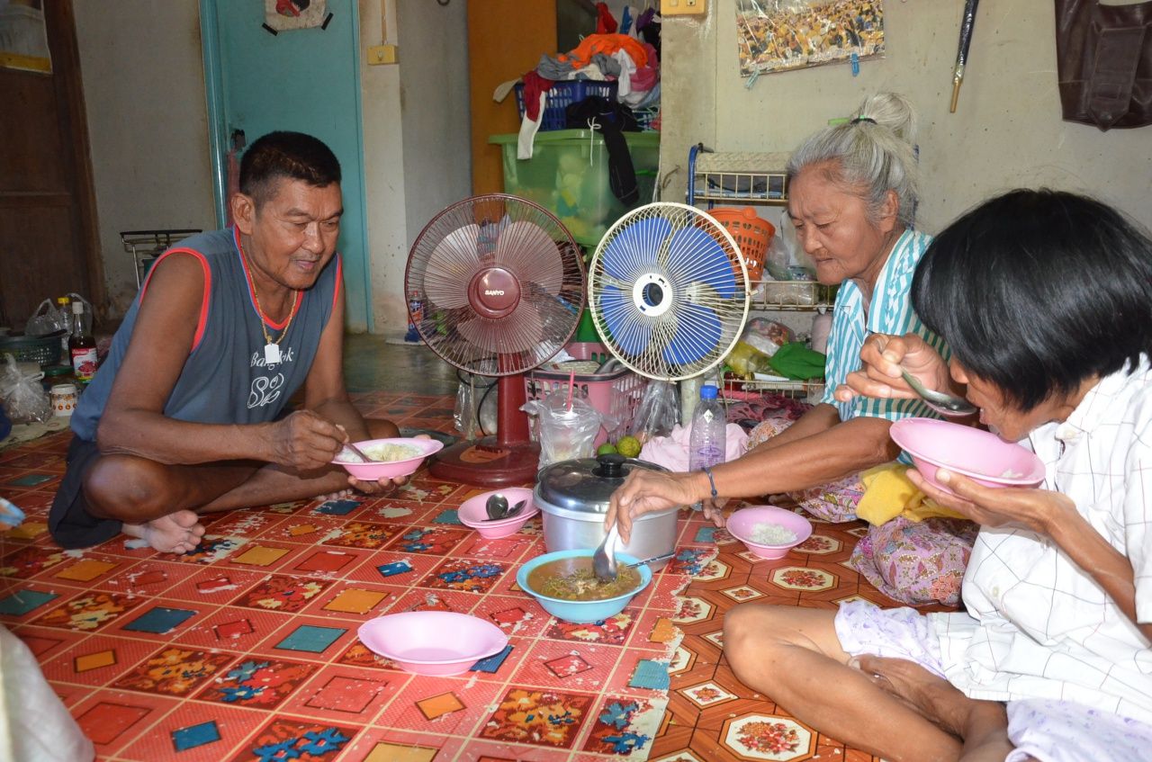 นางสาวสุรินทร์ พูลสวัสดิ์ อายุ 70 ปี พี่สาวคนโต เผยว่า ตอนแรกก็สามารถทำงานกันได้ทุกคน แต่พอมาช่วง 7-8 ปีที่ผ่านมา ร่างกายเริ่มไม่ไหวกันแล้ว ใช้เงินคนชรา เงินผู้พิการประทังชีวิต ได้รวมกันสามคน 1 พันกว่าบาท ก็เอามาซื้อข้าวสาร จ่ายค่าน้ำ ค่าไฟ ตอนนี้สงสารน้องสาวมาก ต้องมาดูแลทุกคนในครอบครัว อยากตายๆ ให้พ้นๆ ไปก็ทำไม่ได้ เพราะขนาดน้องยังสู้เพื่อครอบครัว ตนก็จะขออยู่เป็นกำลังใจให้น้องจนกว่าจะสิ้นลมหายใจ