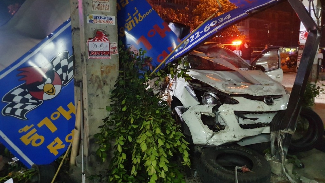 ในที่เกิดเหตุ หน้าร้านยางตานก ข้างเสาไฟฟ้าแรงสูง พบรถยนต์เก๋งมาสด้า สีขาว หมายเลขทะเบียน ศย 1423 กรุงเทพมหานคร สภาพรถพังเสียหายยับเยิน ด้านหน้ารถพุ่งชนอัดติดกับป้ายร้านและหุ่นยนต์เหล็กหลัก 3 ตัน โดยมีผู้เสียชีวิต 2 ราย คือ น.ส.ศศิภา สุวรรณดี อายุ 29 ปี และ ด.ช.กฤตภาส ปัญญาธิวุฒิ อายุ 6 ขวบ ทั้งสองอยู่บ้านเลขที่ 28/3 ถนนเกรณาวัฒนะ ต.บางปรอก อ.เมือง จ.ปทุมธานี ส่วนผู้ได้รับบาดเจ็บสาหัส 3 คน คือ นายธีรภัทร ปัญญาธิวุฒิ อายุ 31 ปี นายภาณุพงศ์ พุ่มคำ อายุ 29 ปี และ น.ส.ไอรดา พุ่มคำ อายุ 27 ปี เจ้าหน้าที่มูลนิธิฯ จึงรีบนำคนเจ็บทั้งหมดส่ง รพ.กรุงสยามเซ็นคาร์ลอส และ รพ.ปทุมธานี