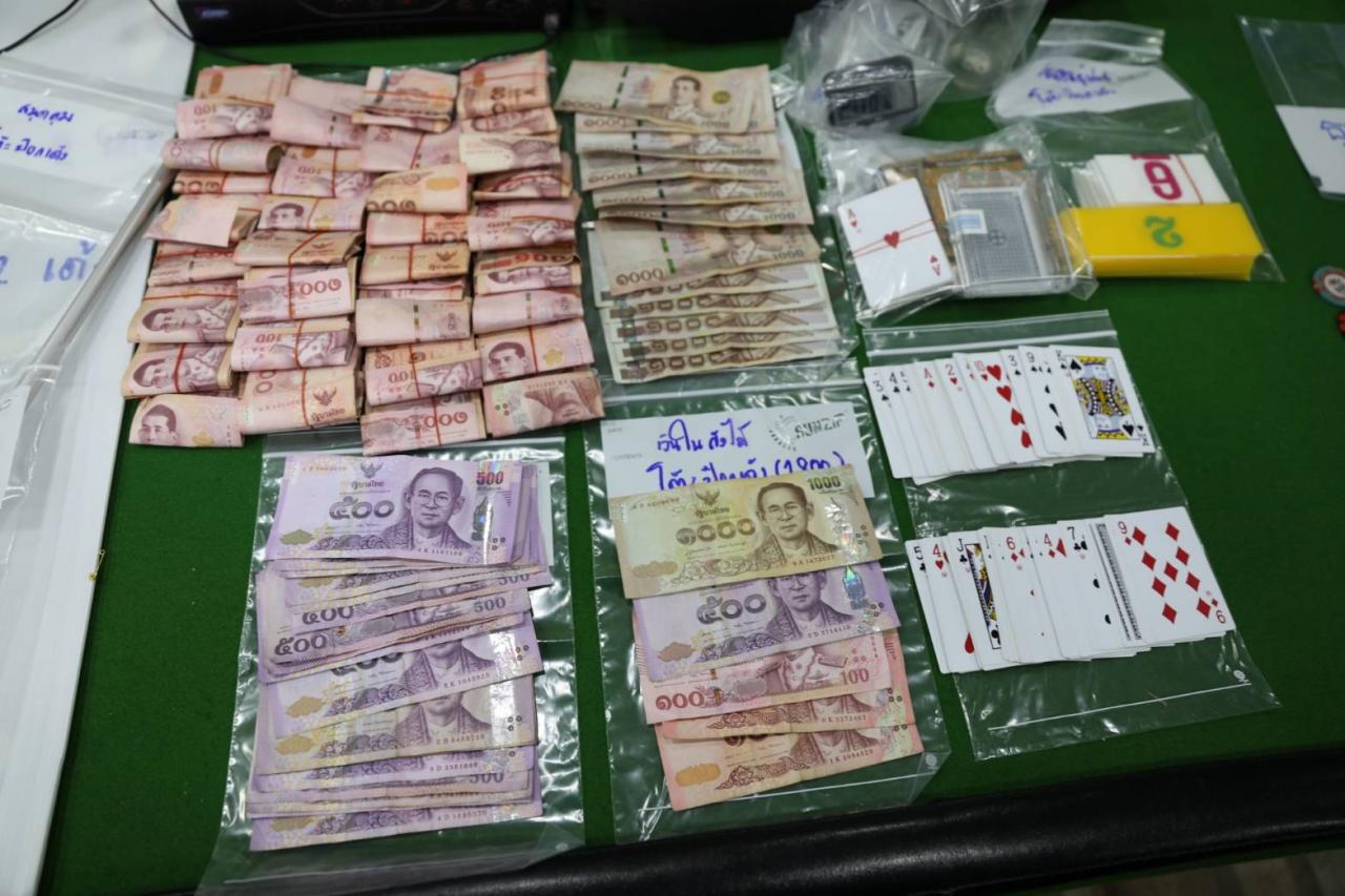 โดยในวันนี้ที่เข้าทำการจับกุมพบว่ามีการเล่นการพนันอยู่ 2 ประเภท คือ กำถั่ว และ ไพ่ป๊อก แต่ก่อนหน้านี้ที่มีเข้ามาทำการสืบพบว่ามีการเล่นการพนันไฮโล เสือมังกร แต่เนื่องจากถูกเจ้าหน้าที่กวดขันจึงได้มีการเก็บไปก่อนแล้ว จึงทำให้มีผู้เล่นลดน้อยลงจากที่ปกติจะมีร่วม 100 คน และครั้งนี้สามารถจับกุมได้ 57 ราย ขณะที่รถที่จอดภายในบ้านพบว่ามีฝุ่นเกาะเป็นจำนวนมาก ซึ่งแสดงให้เห็นว่าได้ถูกจอดทิ้งไว้นานประกอบกับเมื่อตรวจสอบพบสมุดบัญชี จึงทราบว่ารถที่จอดอยู่นั้นได้ถูกนำมาจำนำ โดยเกิดจากนักพนันที่เล่นเสียก็จะใช้รถมาจำนำกับทางบ่อนแห่งนี้ โดยจะทำการตรวจยึดรถและส่งหลักฐานให้กับทาง ปปง. ดำเนินการตามกฎหมายฟอกเงินต่อไป