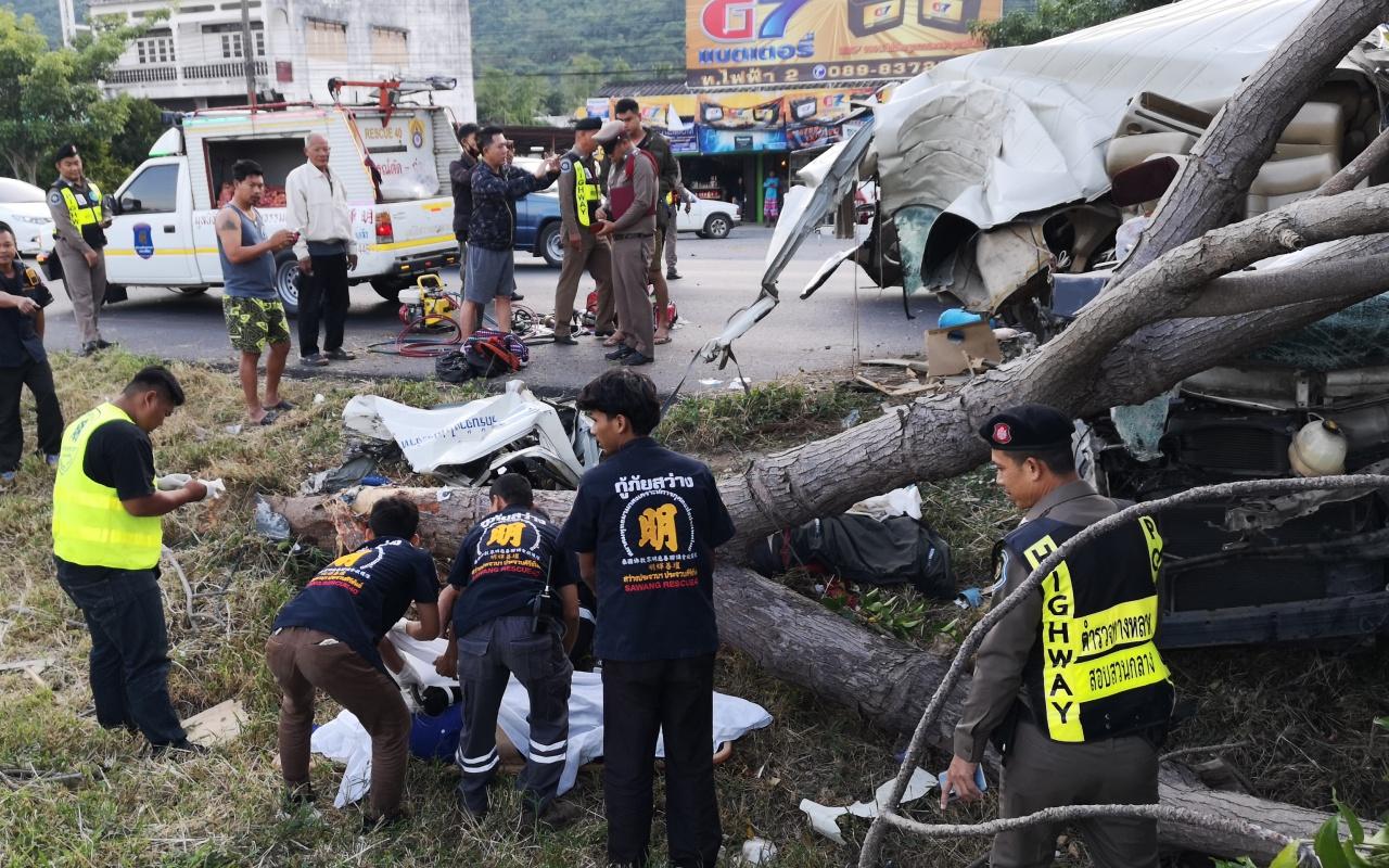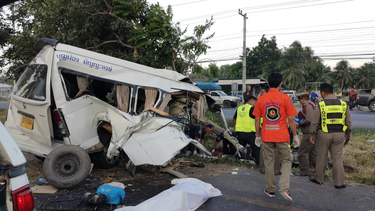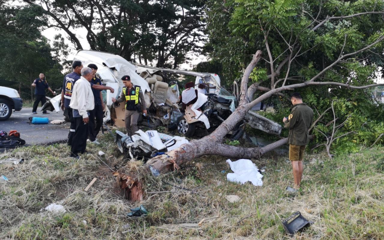 ครอบครัวจากราชบุรี เหมารถตู้จะไปเบตง เสียหลักชนต้นไม้ร่องกลางถนนพังยับ แถวประจวบคีรีขันธ์ ดับ 4 สาหัส 7 คาดคนขับหลับใน