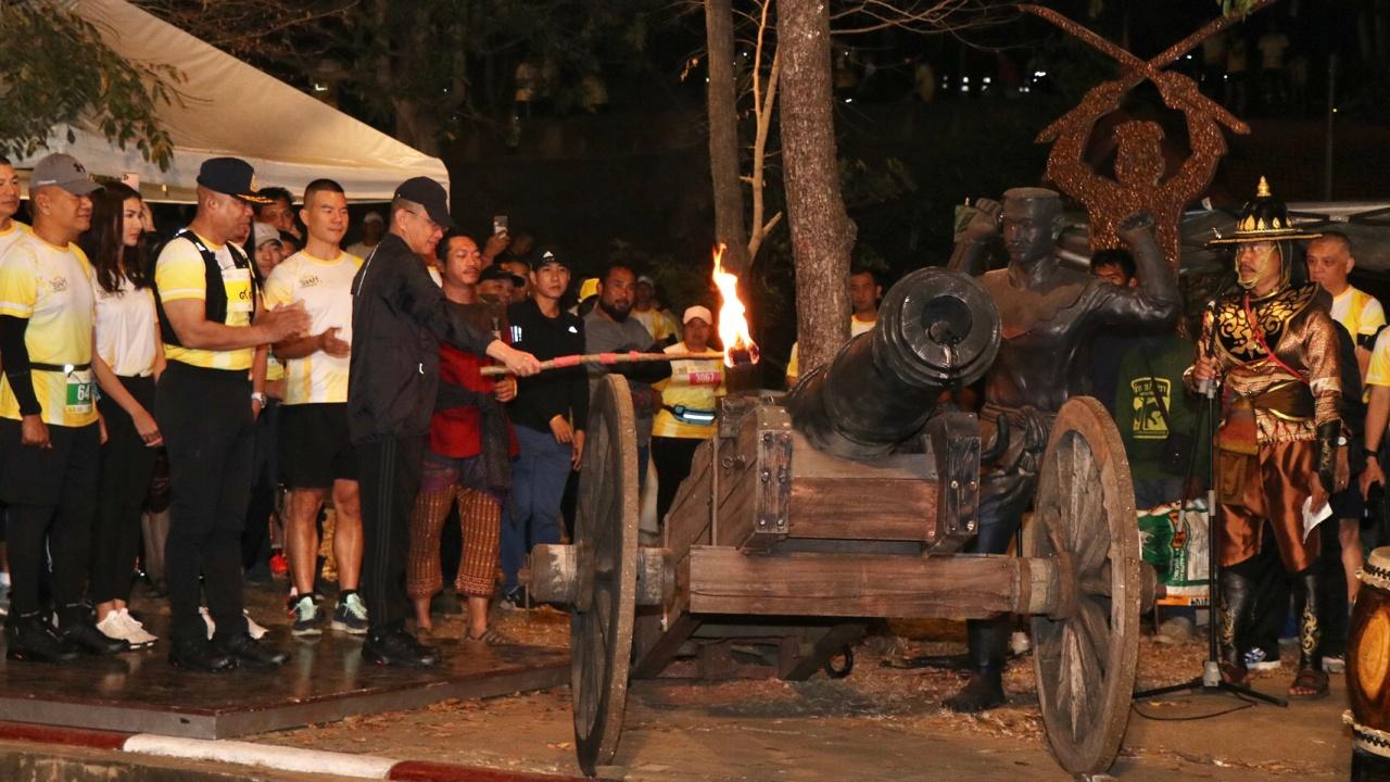 รมช.กลาโหม จุดปืนใหญ่จำลอง ปล่อยตัวนักวิ่งในกิจกรรมวิ่งตามภูมิประเทศบนเส้นทางประวัติศาสตร์ “สยามเทรล 2019” บนเส้นทางประวัติศาสตร์ สงคราม 9 ทัพ ที่ตำบลช่องสะเดา เมืองกาญจนบุรี