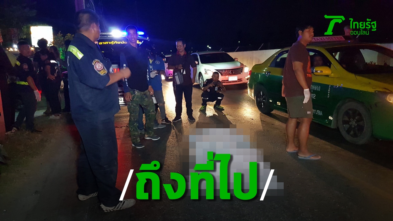 สาวพนักงานโออิชิซิ่งจยย.เสียหลักพลิกคว่ำร่างกระเด็นข้ามเลน แท็กซี่ขับสวนมาแล่นทับหัวดับอนาถ บริเวณถนนเลียบคลองประปา มุ่งหน้าไปแยกศรีสมาน