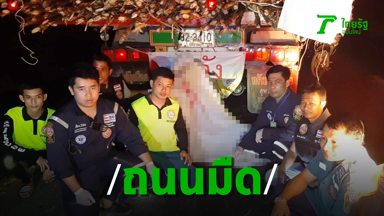 ลุงวัย 60 ซิ่งจยย.ฝ่าความมืดชนท้ายรถพ่วงบรรทุกอ้อย ที่จอดอยู่ริมถนน2089สายชัยบาดาล-ท่าหลวง ดับสยองคาที่ รถพังยับเยิน