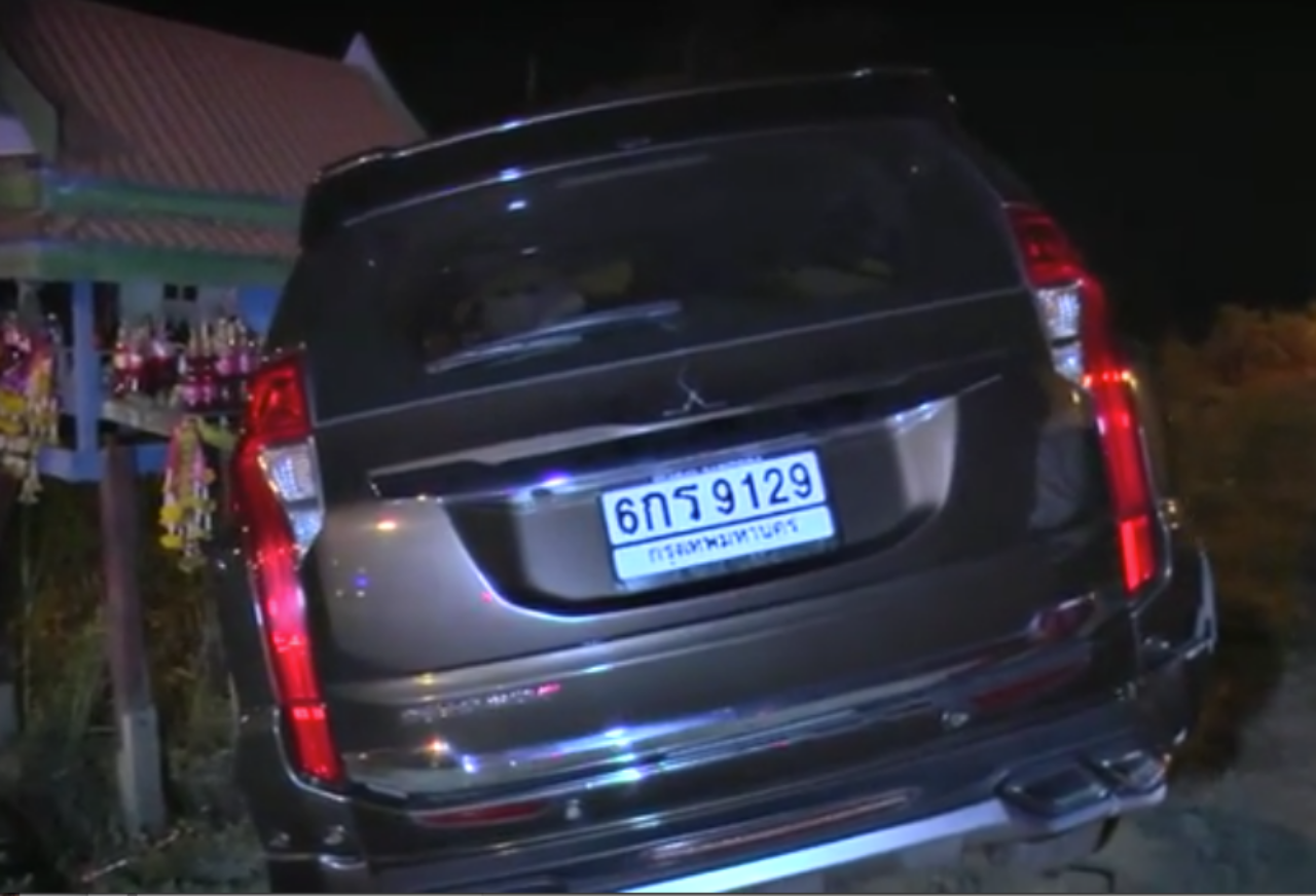 ที่เกิดเหตุพบรถยนต์ฮอนด้า เอสอาร์วี สีขาวหมายเลขทะเบียน 8กข-6538 กรุงเทพมหานคร จอดอยู่ริมถนน สภาพด้านหน้าพังยับเยิน ห่างออกไปเล็กน้อยพบรถมิตซูบิชิ ปาเจโร สีดำ หมายเลขทะเบียน 6กร-9129 กรุงเทพมหานคร ตกลงไปข้างทางเกือบจะชนเข้ากับศาล สภาพด้านหน้าพังเสียหาย มีนายธงชัย แก้วประเสริฐ อายุ 55 ปี น้องชายของ น้าพวง เชิญยิ้ม ตลกชื่อดัง เป็นคนขับรถ ใกล้กันพบนาย ทศพล หิมพานต์ หรือนายสมบูรณ์ จุลมุสิก น้องร้องนักแหล่ชื่อดัง อยู่ในอาการตกใจ