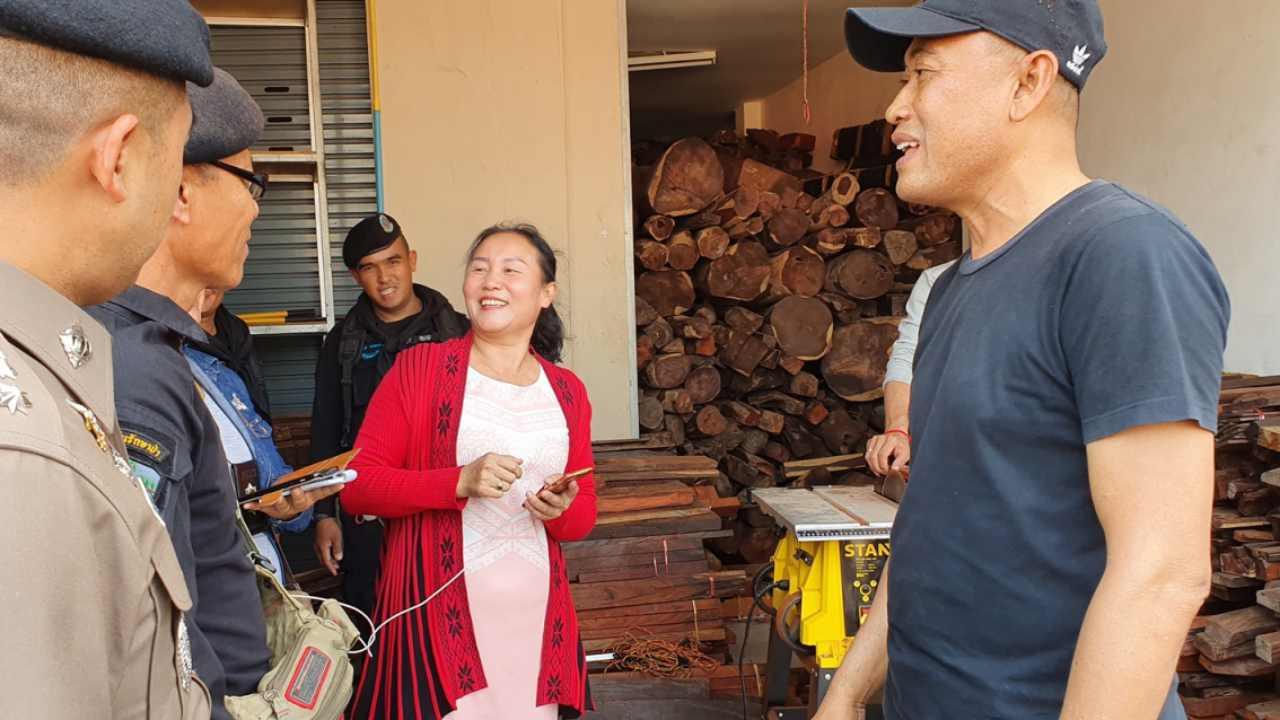 จากการสอบสวน นางยิ่น แซ่จาง รับว่าบริษัทดังกล่าวเป็นของสามีตนคือ นายอามั่ง แซ่ย่าง อายุ 45 ปี ประกอบธุรกิจ จดทะเบียนการค้าเสื้อผ้าและเครื่องแต่งกาย ยังรับทำเฟอร์นิเจอร์ไม้เนื้อแข็งด้วย แต่นายอามั่งไม่อยู่บริษัท เดินทางไปหาซื้อไม้ที่ต่างจังหวัด แต่เมื่อเจ้าหน้าที่ขอดูเอกสารการขออนุญาตทำไม้หรือทำเฟอร์นิเจอร์ไม้เนื้อแข็ง นางยิ่น แซ่จาง ไม่สามารถนำมาแสดงได้