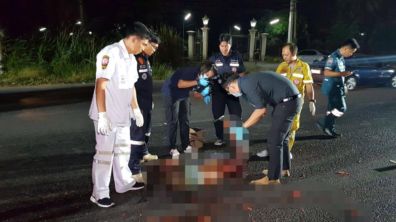 หนุ่มชาวกัมพูชาเดินข้ามถนน ถูกรถเก๋งชนก่อนถูกรถบรรทุกที่วิ่งตามหลังมาเหยียบซ้ำ ร่างแหลกละเอียดตายคาที่ บนถนน 340 ย่านบางบัวทอง ก่อนขับหลบหนี