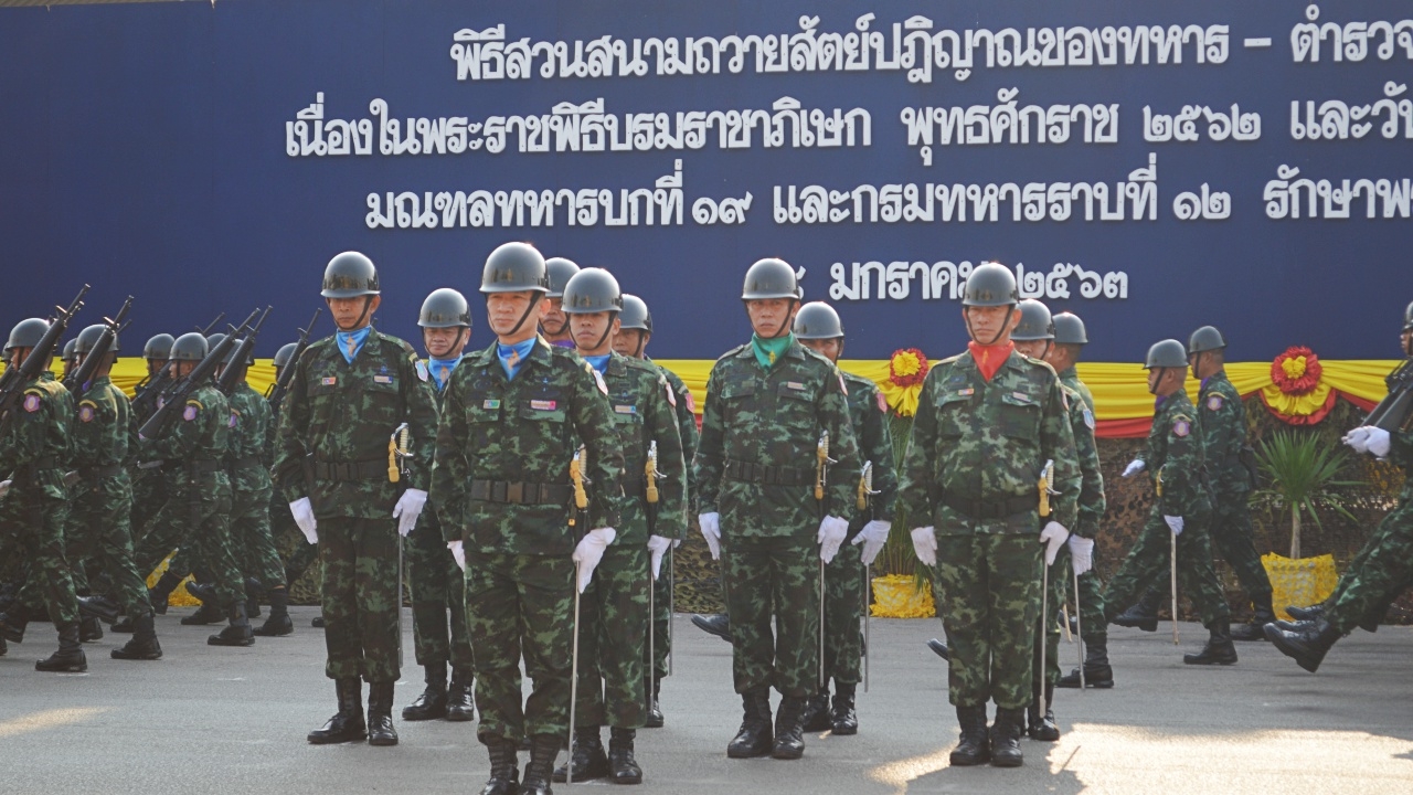 ผู้สื่อข่าวรายงานว่า สำหรับพิธีกระทำสัตย์ปฏิญาณตนต่อธงชัยเฉลิมพล และมีกำลังทหารจากหน่วยใน 3 กองพัน 1 กองร้อยทหารพราน ประกอบการสวนสนาม เพื่อแสดงให้เห็นถึงความแข็งแกร่ง มีระเบียบวินัย สง่างามและความเป็นทหารอาชีพ ด้วยพิธีกระทำสัตย์ปฏิญาณตนต่อธงชัยเฉลิมพล เป็นพิธีทางทหารที่จัดขึ้นเป็นประจำทุกปีในวันกองทัพไทย ซึ่งทหารทุกคน อาทิ นายทหารสัญญาบัตร นายทหารประทวน ทหารกองประจำการ จะต้องผ่านการเข้าร่วมพิธีดังกล่าว เพื่อความเป็นสิริมงคลและแสดงถึงความเป็นทหารอย่างสมบูรณ์ดังกล่าว.