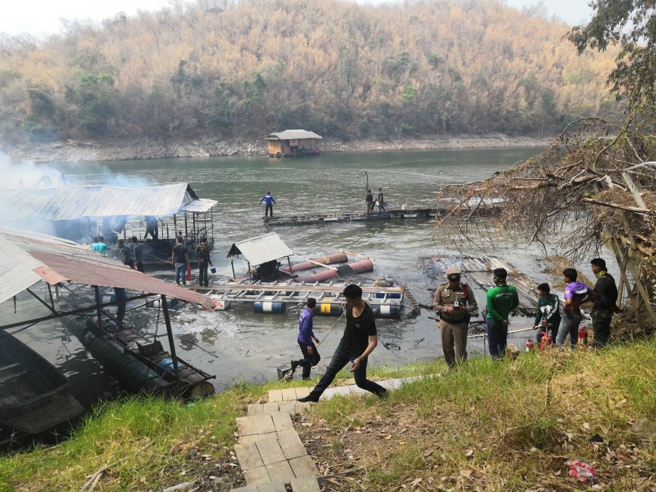 เมื่อเวลา 11.00 น. วันที่ 11 ก.พ.63 ร.ต.อ.อนุสรณ์ สุดโต รองสารวัตร (สอบสวน) สภ.ศรีสวัสดิ์ จ.กาญจนบุรี ได้รับแจ้งเหตุไฟไหม้แพล่องแพพักในอ่างเก็บน้ำเขื่อนศรีนครินทร์ ที่ แพโฟล์ทติ้งเฮ้าส์ หมู่ 1 ต.ท่ากระดาน อ.ศรีสวัสดิ์ โดยเพลิงกำลังโหมลุกลามขยายวง หลังรับแจ้งเหตุ ร.ต.อ.อนุสรณ์ รีบรายงานให้ผู้บังคับบัญชาทราบและประสานงานขอการสนับสนุนรถดับเพลิงจาก อบต.ท่ากระดาน เทศบาลตำบลเอราวัณและเขื่อนศรีนครินทร์ เพื่อช่วยดับไฟและควบคุมเพลิง