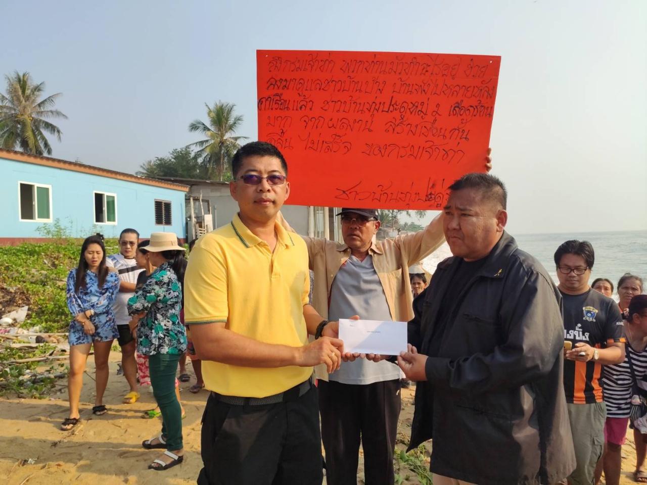 น้ำทะเลกัดเซาะหาดทุ่งประดู่ ทำบ้านเรือนชาวบ้านพังเสียหายหลัง ร้องหน่วยราชการเร่งสร้างกำแพงกั้นคลื่นให้เสร็จ หลังผู้รับเหมาทิ้งงาน นอภ.ทับสะแก ลงสำรวจความเสียหาย สั่งวางบิ๊กแบ็กกั้นชั่วคราว