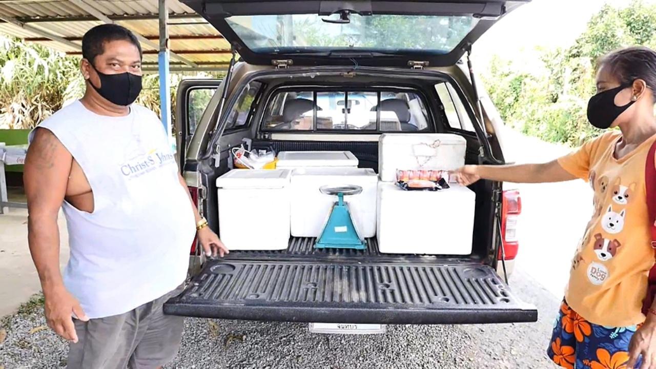 หนุ่มเมืองจันท์พร้อมภรรยา นำรถกระบะคู่ชีพ แปลงมาเป็นรถพุ่มพวงชั่วคราว บรรจุอาหารสด-อาหารแห้ง ตระเวนขายตามหมู่บ้านไกลร้านค้าที่จันทบุรี ได้รับความนิยมจากชาวบ้านช่วงคนอยู่บ้านหลบโควิด-19