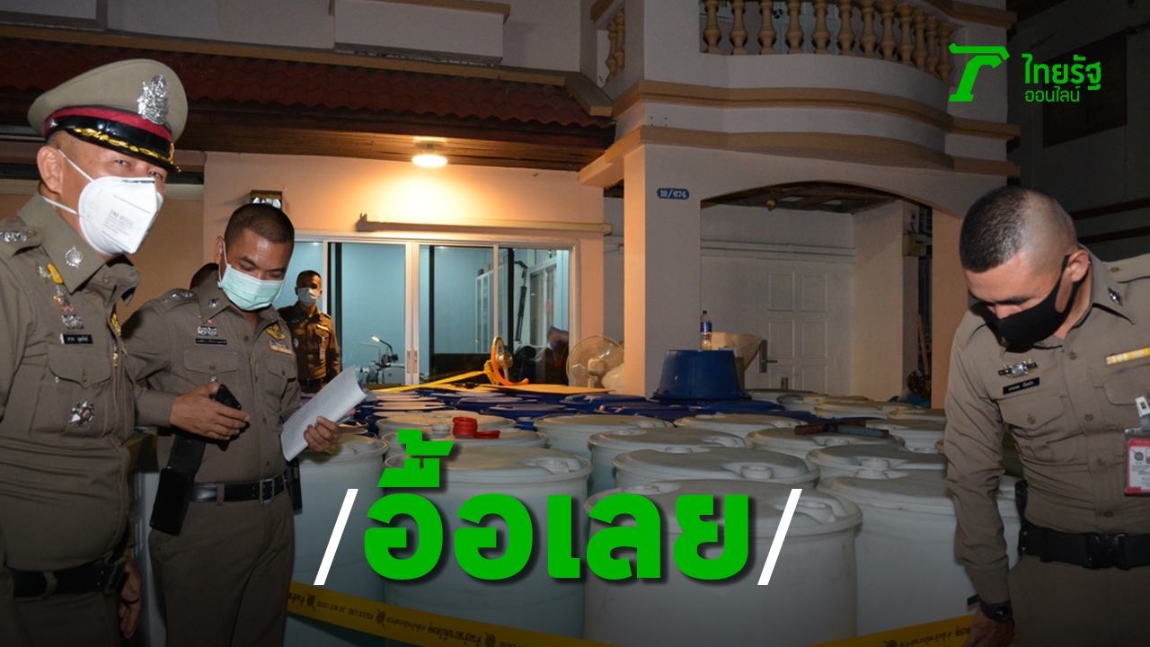 ที่เกิดเหตุเป็นบ้านแฝดสองชั้น อยู่บนเนื้อที่ราว 50 ตารางวา บริเวณลานหน้าบ้านพบถังพาสติกขนาดความจุ 200 ลิตร บรรจุแอลกอฮอล์ จำนวน 42 ถัง รวม 8,400 ลิตร นอกจากนี้ยังพบแกลลอนเปล่าขนาดความจุ 1.5 ลิตร จำนวนราว 2 พันใบ วางกองระเกะระกะ มี น.ส.นันทพันธ์ พิสิษฐ์เดโช อายุ 34 ปี แสดงตัวเป็นเจ้าของบ้าน และให้การปฏิเสธอ้างว่า แอลกอฮอล์ดังกล่าวไม่ใช่ของตน มีนายแอนดี้ซึ่งเป็นคนรู้จักมาฝากไว้