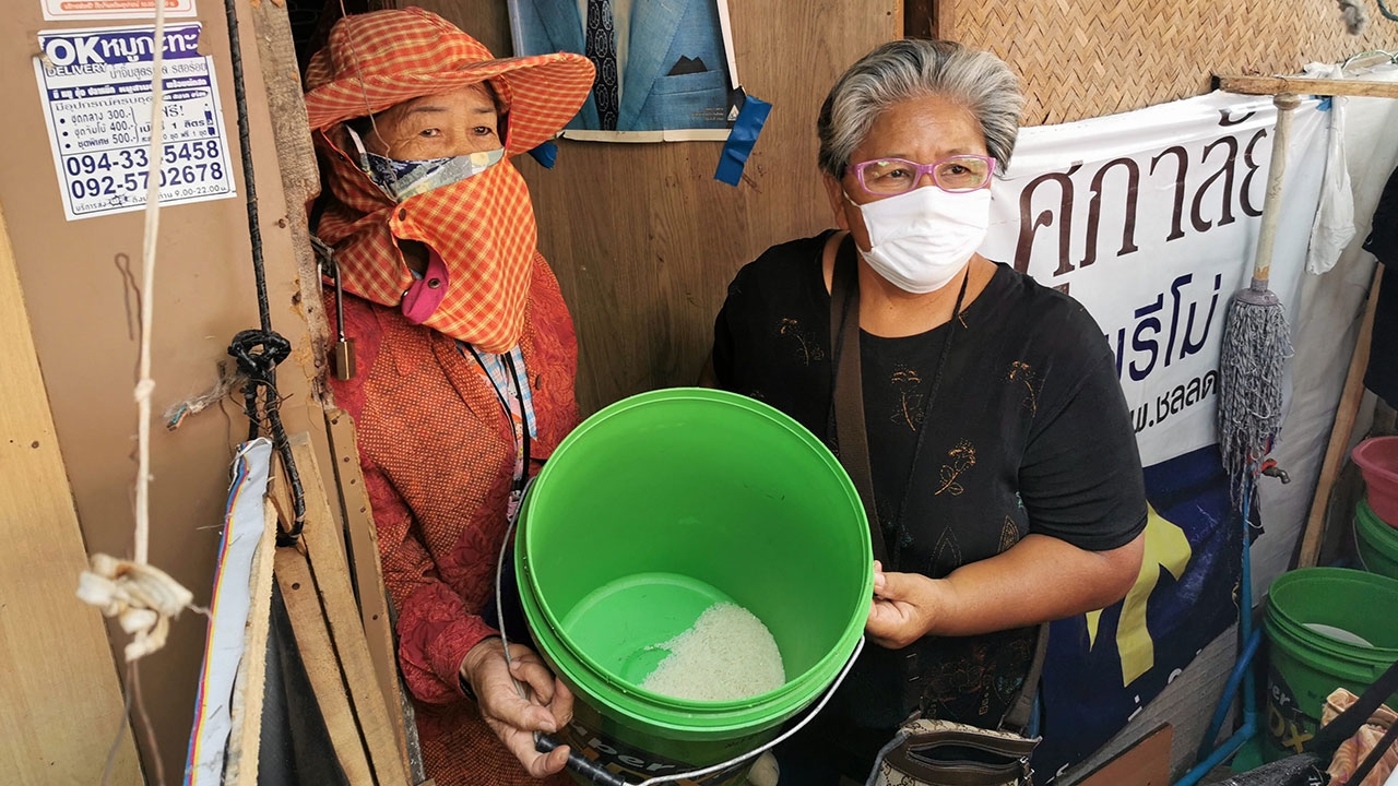 น.ส.ทิพลาวัลย์ ตันเรือง อยู่บ้านเลขที่ 309/46 หมู่ 2 ต.บางบัวทอง อ.บางบัวทอง จ.นนทบุรี อาชีพกระเป๋ารถเมล์สาย 127 โชว์ข้าวสารในถังที่ใกล้หมด เนื่องจากตกงานจากพิษไวรัสโควิด-19 จนไม่มีรายได้ดูแลครอบครัว วอนภาครัฐให้ความช่วยเหลือ.