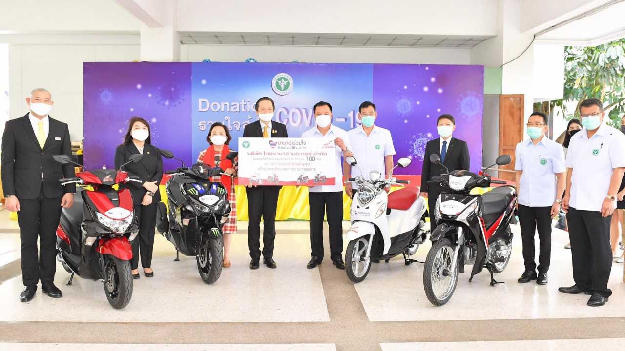 ผู้สื่อข่าวรายงานว่า จากกรณี การแพร่ระบาดของโควิด-19 ในประเทศไทย หลายภาคส่วนยังคงเดินหน้าสนับสนุนภาครัฐโดยเฉพาะโรงพยาบาลและบุคลากรทางการแพทย์ในการเป็นแนวหน้าแก้ปัญหาโควิด-19 ล่าสุด บริษัท ไทยยามาฮ่ามอเตอร์ จำกัด โดยนายพงศธร เอื้อมงคลชัย รองประธานกรรมการบริหารบริษัทฯ พร้อมผู้บริหารระดับสูงส่งมอบรถจักรยานยนต์ 100 คัน มูลค่า 6 ล้านบาท ให้แก่ นายอนุทิน ชาญวีรกูล รองนายกรัฐมนตรีและรัฐมนตรีว่าการกระทรวงสาธารณสุข หรือ สธ.เพื่อนำไปกระจายสู่สาธารณสุขพื้นที่ 77 จังหวัด ใช้เป็นหน่วยเคลื่อนที่เร็ว เพิ่มประสิทธิภาพ และความคล่องตัวในการปฏิบัติภารกิจพิชิต โควิด-19