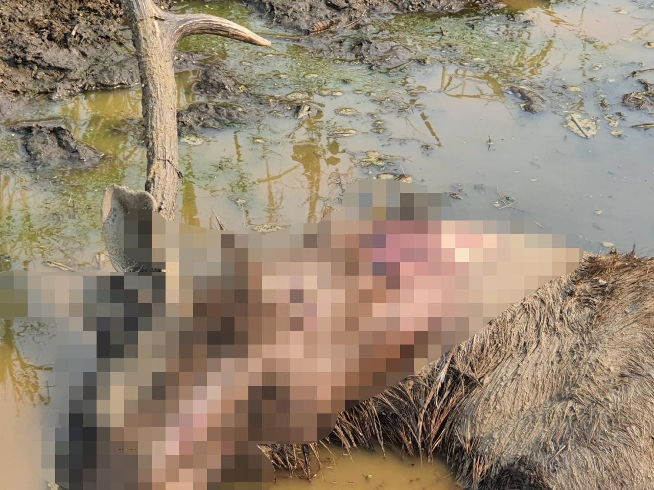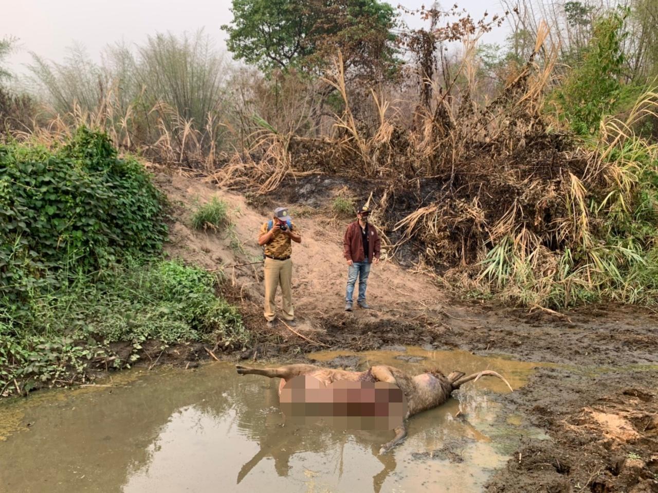 เมื่อเวลา 08.00 น. วันที่ 13 เมษายน 2563 ผู้สื่อข่าวรายงานว่า นายกิติพัฒน์ ธาราภิบาล หัวหน้าอุทยานแห่งชาติแม่วงก์ จ.กำแพงเพชร-นครสวรรค์ ได้รับแจ้งว่า พบซากกวางป่าจำนวน 1 ตัว บริเวณปลักน้ำ ในพื้นที่อุทยานแห่งชาติแม่วงก์ เขตหมู่ 24 ต.แม่เล่ย์ อ.แม่วงก์ จ.นครสวรรค์ สั่งการให้ นายวีระเชษฐ์ ปุพพโก นักวิชาการป่าไม้ปฏิบัติการ และคณะ เข้าพื้นที่ไปตรวจสอบพิสูจน์ซากกวางป่าตัวดังกล่าว จากนั้นจึงรายงานต่อให้ นายธนิตย์ หนูยิ้ม ผอ.สำนักบริหารพื้นที่อนุรักษ์ที่ 12 (นครสวรรค์) กรมอุทยานแห่งชาติ สัตว์ป่า และพันธุ์พืช พร้อมกับเดินทางไปจุดเกิดเหตุ พบว่าเป็นซากกวางป่า เพศผู้ ตัวเต็มวัย น้ำหนักประมาณ 180 กิโลกรัม นอนตายบริเวณในปลักน้ำของคลองแม่เรวา ใกล้แปลงปลูกป่าของหน่วยจัดการต้นน้ำขุนน้ำเย็น อยู่กลางป่าลึก ห่างลึกเข้าไปจากแนวเขตอุทยานแห่งชาติแม่วงก์ประมาณ 10 กิโลเมตร มีร่องรอยบาดแผลเป็นรอยเขี้ยวบริเวณคอและบริเวณลำตัว และใกล้ๆ กันพบรอยตีนเสือโคร่งขนาดใหญ่หลายรอย