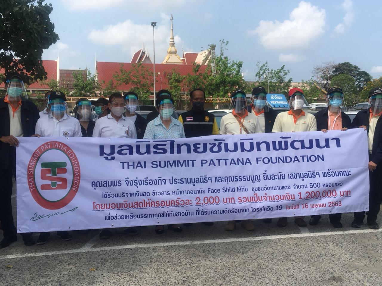 วันที่ 16 เมษายน 2563 นางสมพร จึงรุ่งเรืองกิจ ประธานมูลนิธิไทยซัมมิทพัฒนา มารดาของ นายธนาธร จึงรุ่งเรืองกิจ อดีตหัวหน้าพรรคอนาคตใหม่ พร้อมตำรวจโรงงานจังหวัดสมุทรปราการ และกำนัน ผู้ใหญ่บ้าน พื้นที่หมู่ 3 ต.บางแก้ว อ.บางพลี จ.สมุทรปราการ ร่วมกันนำหน้ากากอนามัย พร้อมข้าวสาร และเงินช่วยเหลือชาวบ้านครอบครัวละ 2,000 บาท เข้าแจกจ่ายช่วยเหลือชาวบ้านในชุมชนพัฒนาหลังวัดหนามแดง ที่ได้รับผลกระทบจากสถานการณ์การแพร่ระบาดของไวรัสโควิด 19 โดยมีชาวบ้านในชุมชนดังกล่าวกว่า 500 ครอบครัว มารอรับอย่างเป็นระเบียบ