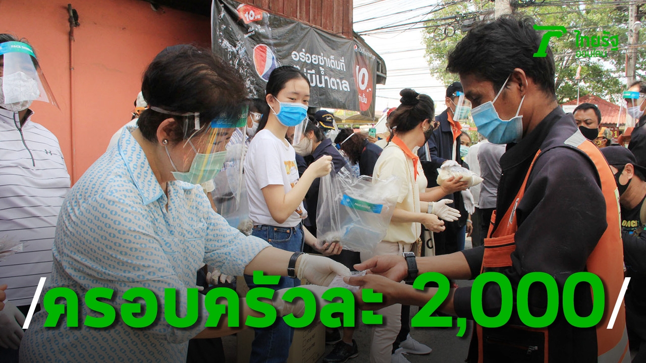 “สมพร” แม่ของ “ธนาธร” ในฐานะประธานมูลนิธิไทยซัมมิทพัฒนา ร่วมซับน้ำตาชาวบ้านชุมชนหลังวัดหนามแดง สมุทรปราการ บรรเทาทุกข์ผลกระทบโควิด-19 แจกข้าวสาร หน้ากาก และเงิน ครอบครัวละ 2,000 บาท