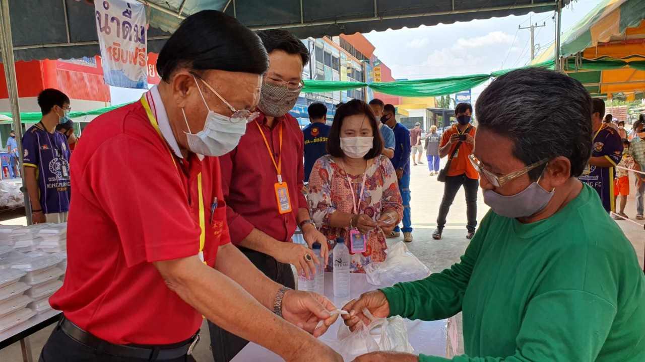 ชาวบ้านยกมือท่วมหัว ประธานมูลนิธิฯ ที่หนองม่วง ลพบุรี พร้อมครอบครัว แจกอาหารกินกันได้ทั้งอำเภอ แจกทั้งชาวบ้าน เจ้าหน้าที่รพ. ตำรวจ อาสาสมัครฯ จิตอาสา หน่วยคัดกรอง ทุกจุด โดยคนที่มารับต้องสวมแมสก์ ยืนเว้นระยะห่าง ล้างมือด้วยแอลกอฮอล์ ไม่ต้องแย่ง ไม่ต้องรีบ เพราะทำแจกตลอดทั้งวัน