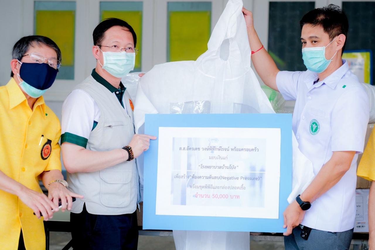 เมื่อวันที่ 24 เม.ย.63 นายอัครเดช วงษ์พิทักษ์โรจน์ ส.ส.ราชบุรี เขต 4 ได้เป็นตัวแทนครอบครัวนำเงิน 50,000 บาท มอบให้ รพ.บ้านโป่ง เพื่อสมทบทุนสร้างห้อง ICU ความดันลบ เพื่อรองรับผู้ป่วยติดเชื้อไวรัสโควิด-19 พร้อมมอบชุดป้องกันการติดเชื้อ (PPE) 30 ชุด และกล่องอะครีลิคปลอดเชื้อจำนวน 6 ชุด โดยมี นพ.ธิติ แสวงธรรม ผอ.รพ.บ้านโป่ง เป็นผู้รับมอบ พร้อมทั้งได้พา นายอัครเดช วงษ์พิทักษ์โรจน์ เยี่ยมชมห้องไอซียูความดันลบที่อยู่ในช่วงกำลังก่อสร้าง