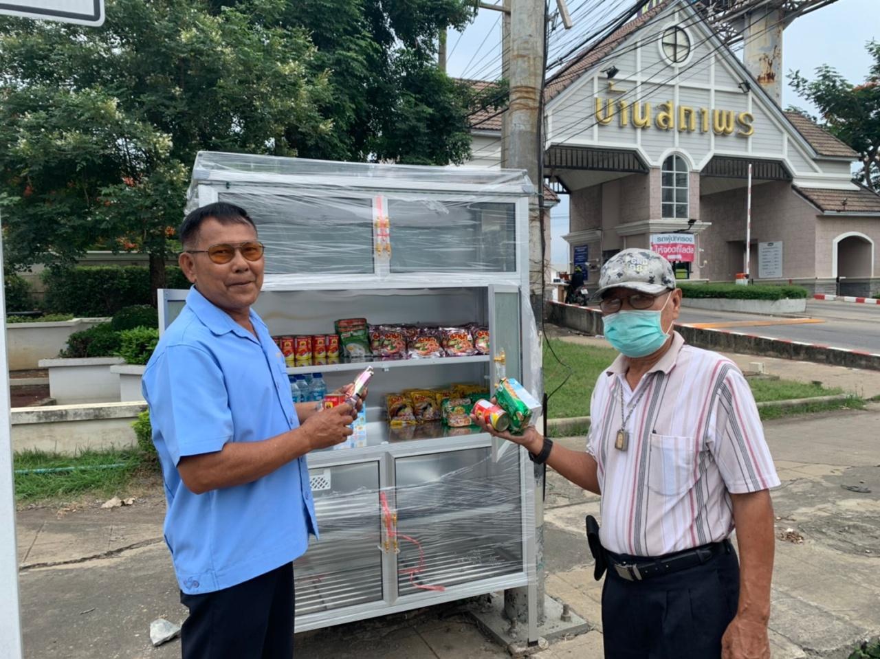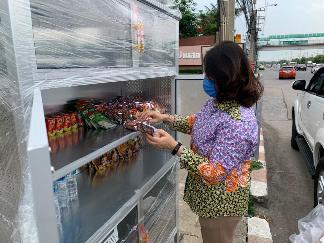 เมื่อวันที่ 11 พ.ค.63 ผู้สื่อข่าวรายงานว่า ที่บริเวณริมถนนรังสิต-นครนายก หน้าหมู่บ้านสถาพร หมู่ที่ 2 ตำบลบึงยี่โถ อำเภอธัญบุรี จังหวัดปทุมธานี ได้มีการจัดตั้งตู้กับข้าว ตู้ปันสุข หยิบไปแต่พอดี มีเหลือใช้ใส่ตู้แบ่งปัน โดยมีประชาชนได้นำเครื่องบริโภคต่างๆ อาทิ บะหมี่กึ่งสำเร็จรูป น้ำดื่ม และขนมหลายชนิด มาใส่เอาไว้เพื่อแบ่งปัน บริจาคให้แก่ผู้เดือดร้อนจากความอดอยาก ขาดแคลน ในสถานการณ์โรคโควิด-19 ที่กำลังแพร่ระบาดอยู่ในขณะนี้
