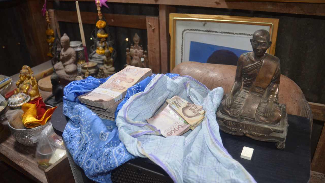 ต่อมา พ.ต.อ.สุรเชษฐ์ แสนวงศ์สิริ ผกก.สภ.แก่งคอย พร้อมกำลังตำรวจ ได้นำตัว นายนันทา หรือ ช่างปุ้ย ผู้ต้องหา มาทำแผนประกอบคำรับสารภาพ โดยนำตัวไปที่บ้านของผู้ต้องหาเพื่อค้นหาของกลางที่เป็นเงินสด หลังจากนายนันทานำทองรูปพรรณทั้งหมดที่ขโมยมาไปขายที่ร้านทองแห่งหนึ่งในตลาดวังม่วง ได้เงินมาประมาณ 370,000 บาท เจ้าหน้าที่ตำรวจได้ตรวจค้นในห้องนอน พบเงินทั้งหมด 470,000 บาทในตู้พระในห้อง พร้อมพระพุทธรูปเก่า 1 องค์