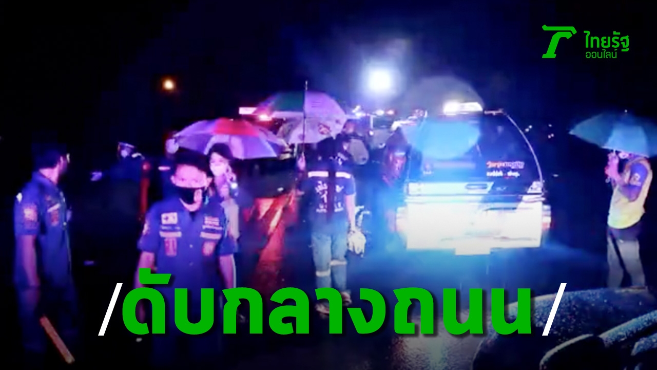 จยย.เสียหลักพลิกคว่ำ คนขี่เสียชีวิตคว่ำหน้ากลางถนน เจ้าหน้าที่ตรวจสอบไม่พบร่องรอยถูกเฉี่ยวชน คาดขี่ฝ่าสายฝนลื่นไถลหัวฟาดดับ พบสำเนาบัตรประชาชนใต้เบาะ ระบุชื่อคนขี่-ชาวกำแพงเพชร ส่งชันสูตรต่อ รพ.