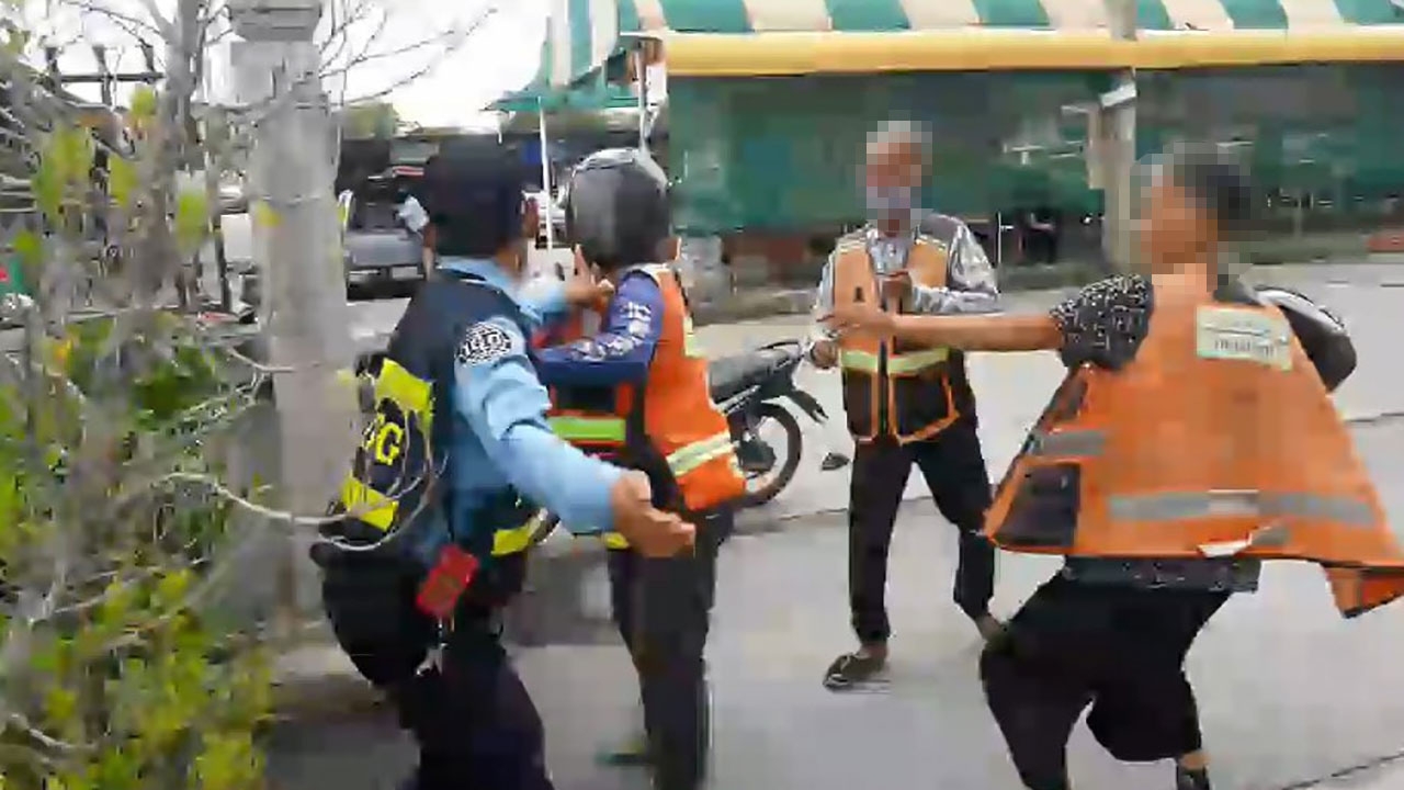 ภาพเหตุการณ์ขณะนายสถาพร ทองอินทร์ อายุ 37 ปี รปภ.มีเรื่องทะเลาะกับนางพะเยา เสนารักษ์ อายุ 67 ปี และสามีก่อนถูกนางพะเยาใช้มีดแทงอกตัดขั้วหัวใจดับคาลานจอดรถหลังตึกบางนาทาวเวอร์ ซอยมิตรภาพ หมู่ 14 ต.บางแก้ว อ.บางพลี จ.สมุทรปราการ อ้างโดนผู้ตายชกต่อย และคว้าไม้ตรงจะเข้าทำร้ายก่อน จึงต้อง ต่อสู้ป้องกันตัว.