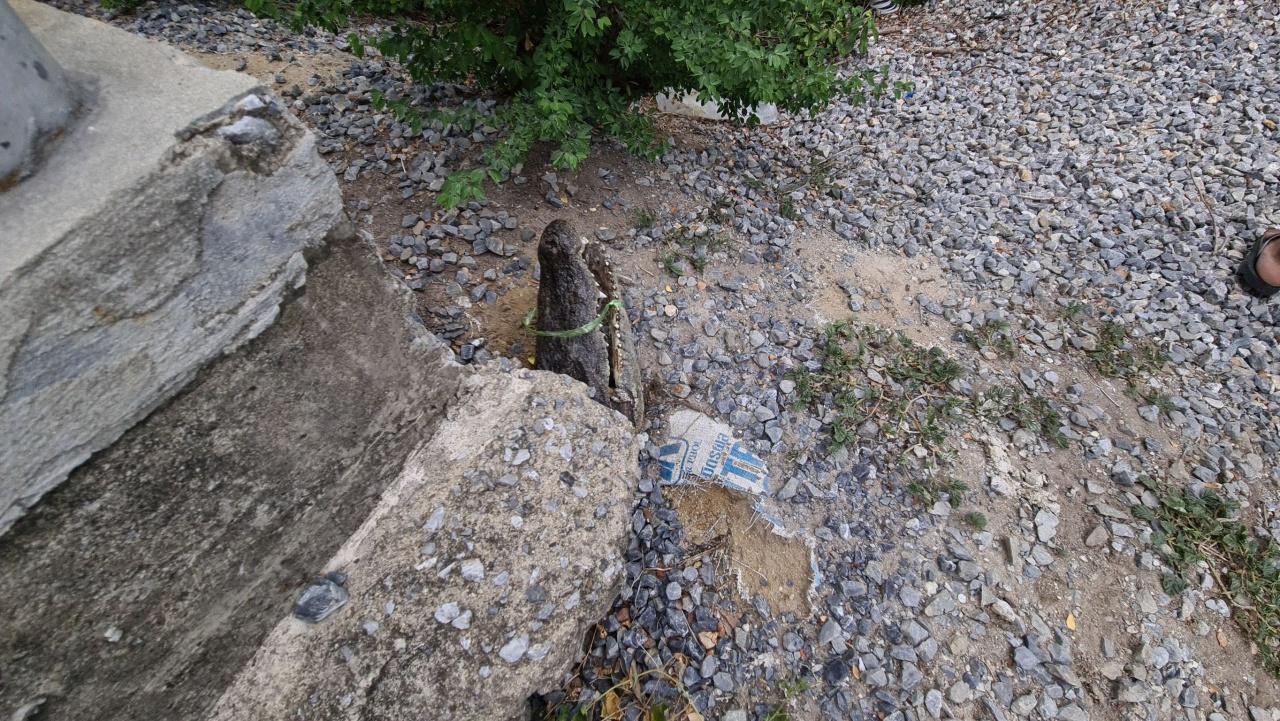 วันที่ 23 พฤษภาคม 2563 นายธนเดช สู่ความดี ผู้ใหญ่บ้านหมู่ที่ 6 ตำบลแหลมฟ้าผ่า อำเภอพระสมุทรเจดีย์ จังหวัดสมุทรปราการ ได้รับแจ้งจากชาวบ้านว่า มีคนงานก่อสร้างชาวพม่าวัย 28 ปี พบหัวจระเข้ บริเวณพื้นแท่นเสาสัญญาณโทรศัพท์ จึงพร้อมผู้ช่วยผู้ใหญ่บ้านเดินทางไปตรวจสอบ
