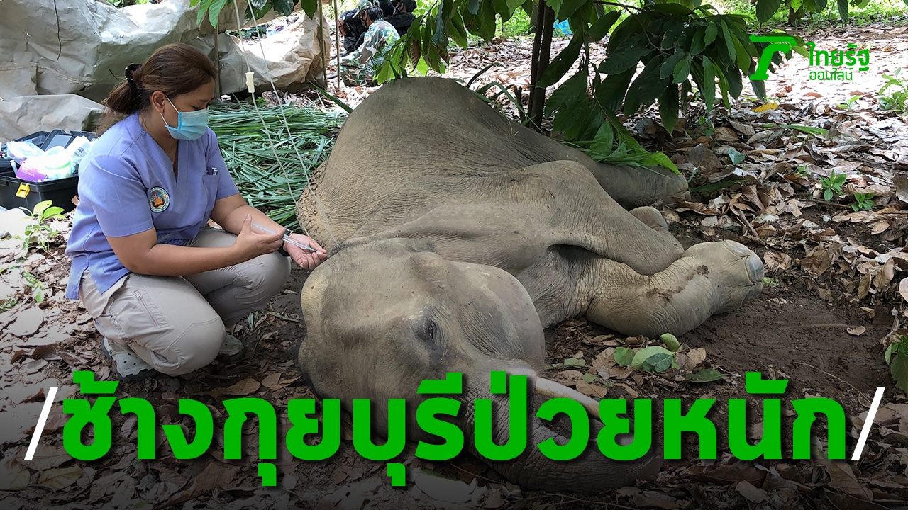 สัตวแพทย์กรมอุทยานฯ พยายามช่วยช้างป่าล้มป่วย สภาพซูบผอมจนกระดูกสันหลังโผล่ เร่งให้น้ำเกลือและวิตามินบำรุงร่างกายให้ฟื้นตัวก่อน ขณะที่ตรวจพบรูแผลสดที่บริเวณก้น 2 จุด สแกนแล้วพบโลหะฝังใน