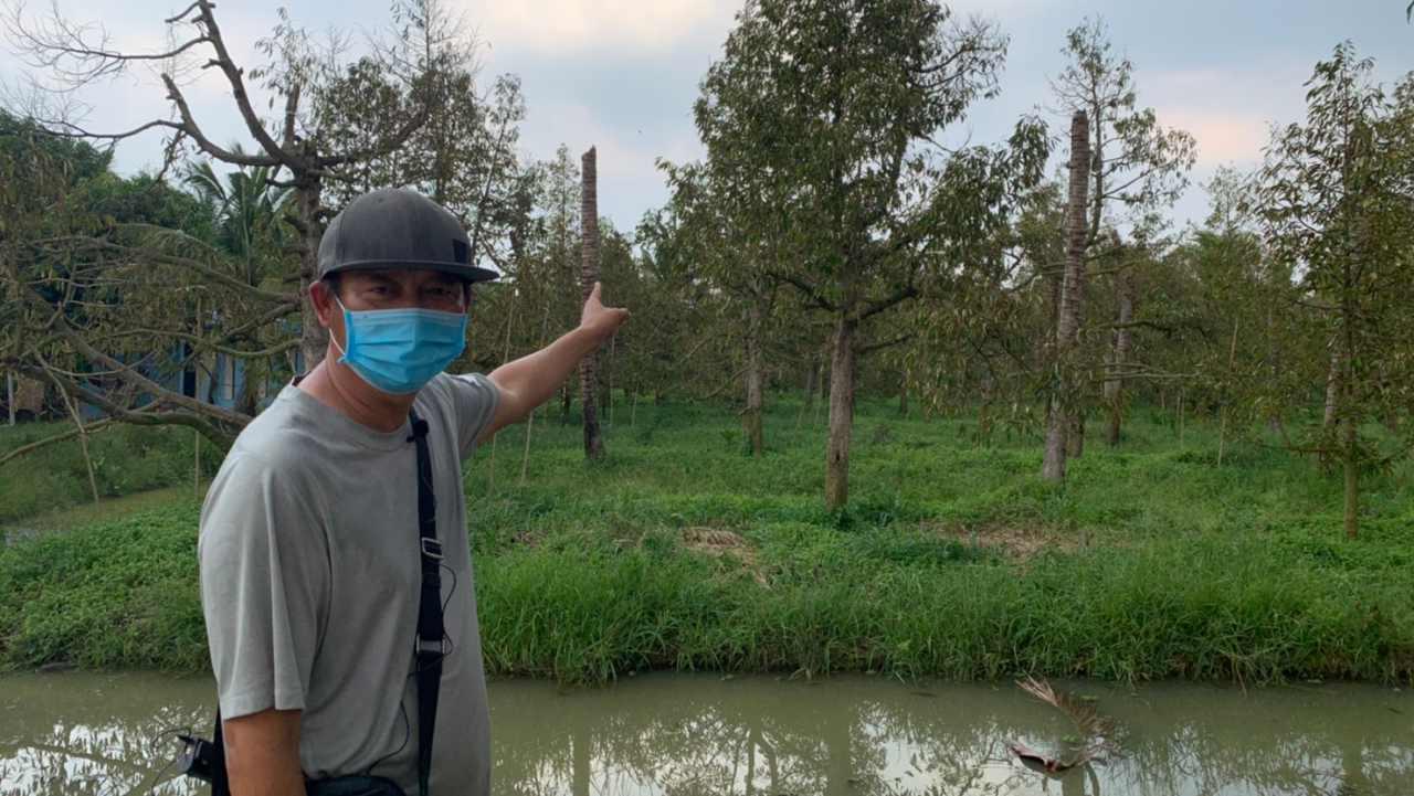 เกษตรผู้ปลูกทุเรียนปทุมธานี หวั่นทุเรียน "หนองเสือ" อาจสูญพันธุ์ไปในอนาคตอันใกล้ เหตุแห้งแล้ง ขาดน้ำ ทำให้น้ำกร่อยหนุนเข้ามา เกิดเชื้อราที่ผลทุเรียน ปีนี้ผลผลิตลดลงมาก ขณะที่ความต้องการซื้อล้นทะลัก ลูกค้ามาเหมาถึงสวน