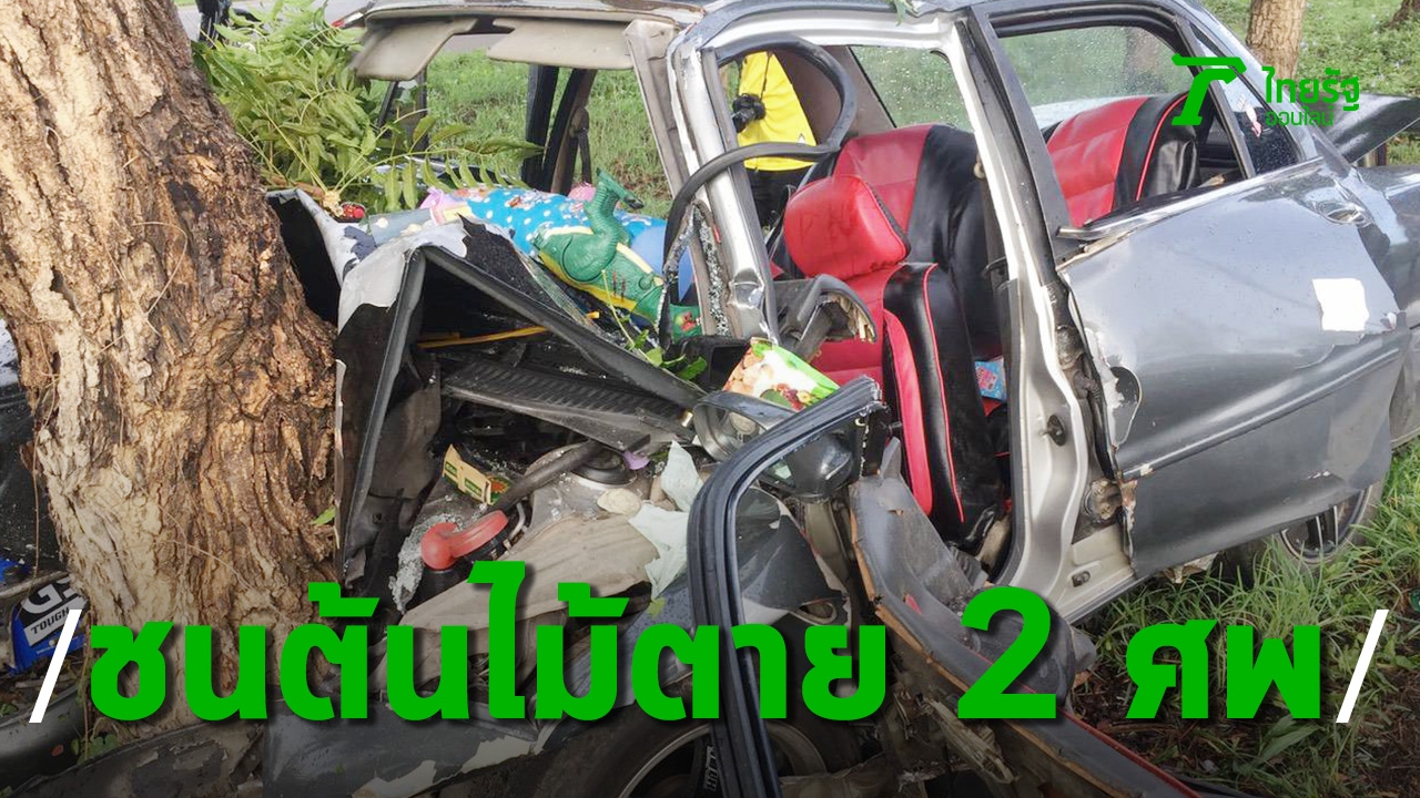 หนุ่มกาญจน์ขับเก๋งจะไปท่ามะกา เสียหลักพุ่งชนต้นไม้เกาะกลางถนนแสงชูโตสายใหม่ ที่ อ.ท่าม่วง เจ็บสาหัส ส่วนเมียและลูกสาว 3 ขวบ ดับคารถ 2 ศพ ตร.คาดคนขับอาจหลับใน