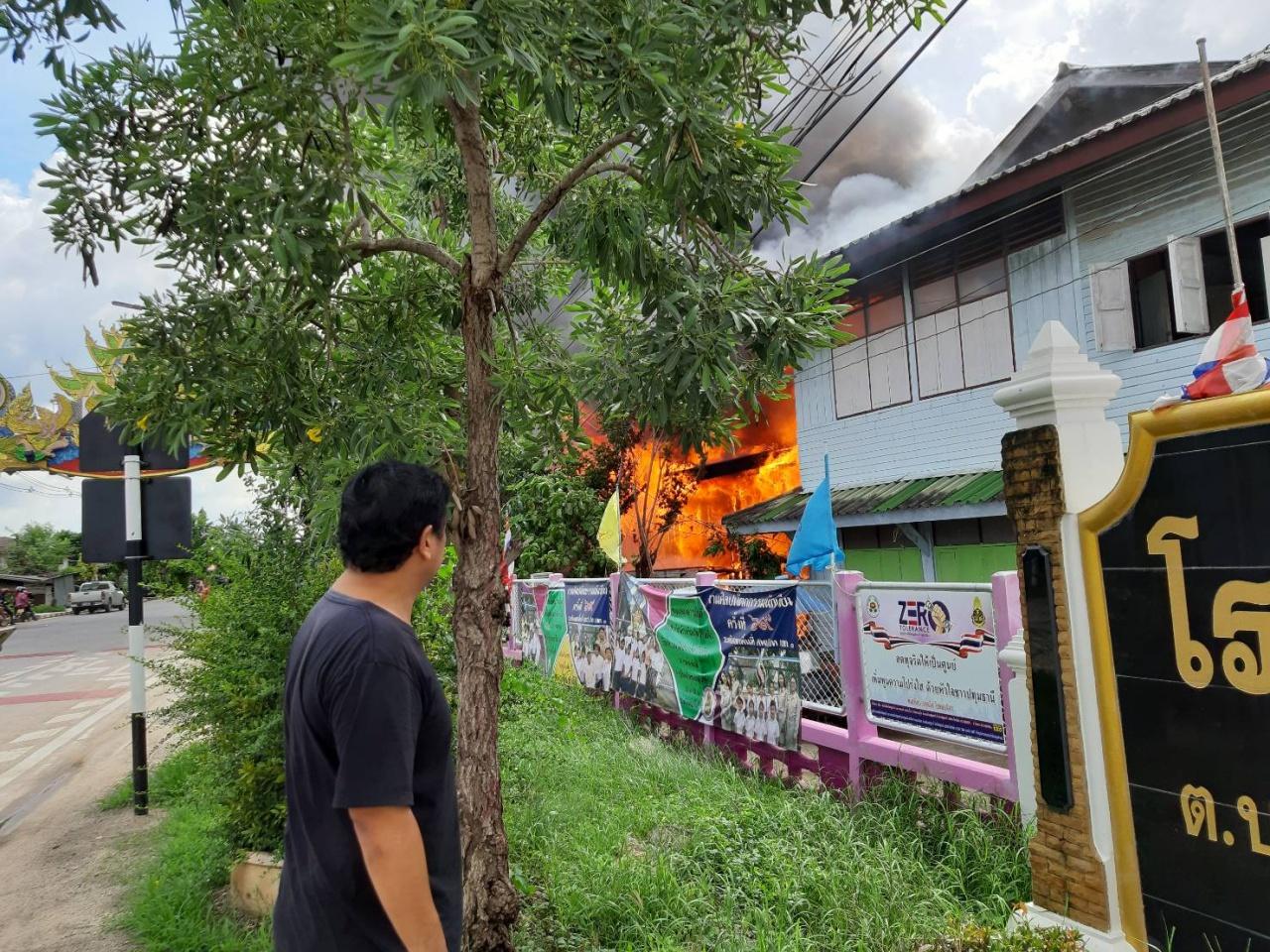 ในที่เกิดเหตุ พบว่าเพลิงกำลังโหมลุกไหม้บ้านไม้ 2 ชั้น ที่อยู่ติดกับด้านหลังของอาคารเรียนไม้ 2 ชั้น เจ้าหน้าที่ดับเพลิงจึงได้ช่วยกันเร่งระดมฉีดน้ำเพื่อดับไฟ และป้องกันไม่ให้ลุกลามไปยังตัวอาคารโรงเรียน โดยใช้เวลากว่าครึ่งชั่วโมง จึงสามารถควบคุมเพลิงไว้ได้ในวงจำกัด เบื้องต้น พบว่าไฟไหม้เสียหายหมดทั้งหลัง และไฟยังลุกลามเป็นติดห้องเรียน และห้องพักครูเสียหายอีกส่วนหนึ่ง