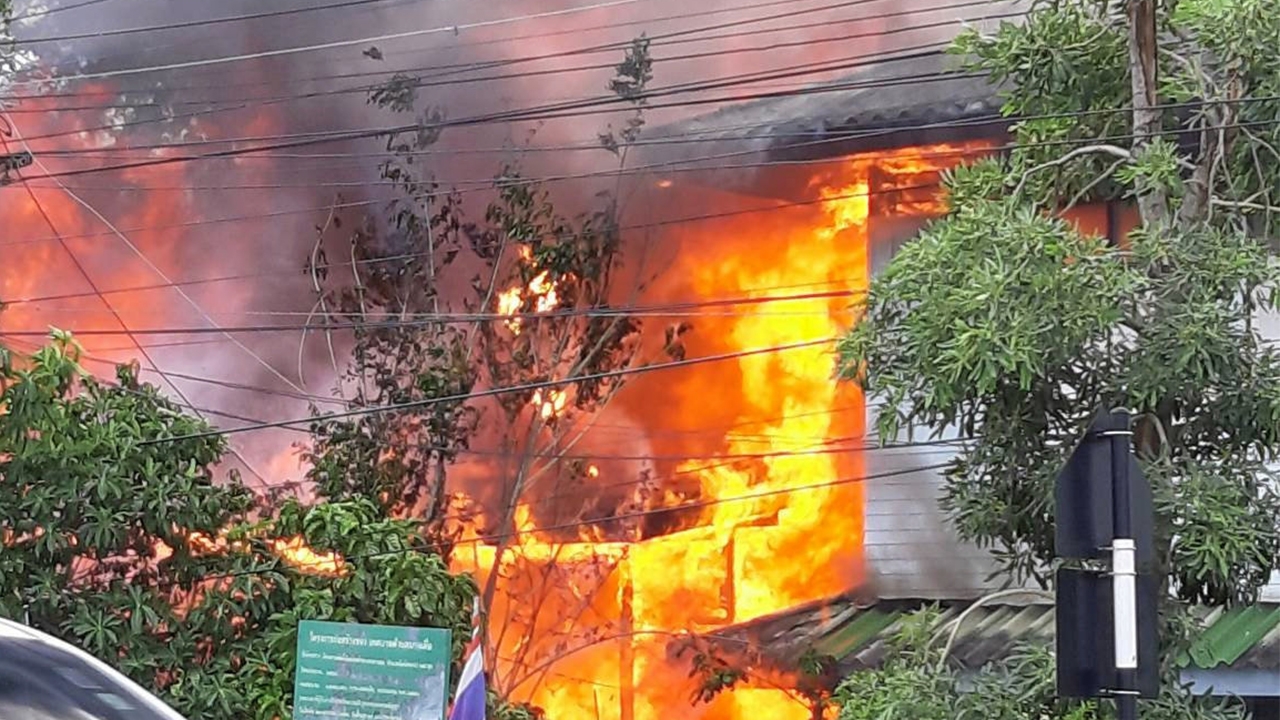 ไฟโหมไหม้บ้านพักของนายประหยัด คนไทย นักการภารโรงภาย ในโรงเรียนวัดบางเดื่อ อ.เมืองปทุมธานี ลุกลาม ติดอาคารไม้ใกล้เคียง เป็นเหตุให้ภรรยาและหลานชายวัย 8 ขวบถูกไฟ คลอกตายสยองร่างดำเป็นตอตะโก.