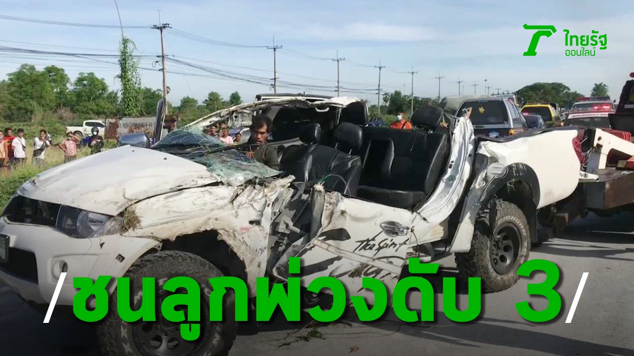 อุบัติเหตุบนถนนสายเอเชีย อ.อินทร์บุรี สิงห์บุรี รถพ่วงชนกัน ลูกพ่วงพลิกขวางบนถนน รถปิกอัพขับตามหลังมา เบรกไม่ทัน หักหลบไม่พ้น ชนแล้วคว่ำลงข้างทาง คนนั่งกระบะหลังกระเด็นตก ตายคาที่ 3 บาดเจ็บอีก 7