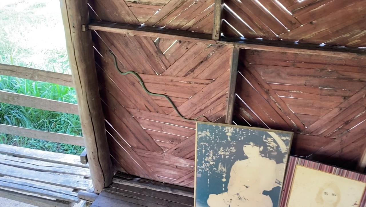 ทางด้าน นางบุศกร จิตร์หาญ อายุ 57 ปี น้องสาวพุ่มพวง คนที่ 5 ได้พาไปชมบ้านจำลองสมัยที่ครอบครัวของพุ่มพวง และแม่เล็ก (มารดา) ได้อาศัยอยู่ตอนสมัยยังไม่โด่งดังมากนัก ขณะที่พาขึ้นไปดูรูปเก่าภายในบ้าน ปรากฏว่ามี "งูเขียว" เลื้อยออกมาจากหลังรูปของ "พุ่มพวง ดวงจันทร์" และเลื้อยหายไปในผนังบ้านด้านหลัง ต่างพากันตกใจว่างูเขียวมาได้อย่างไร