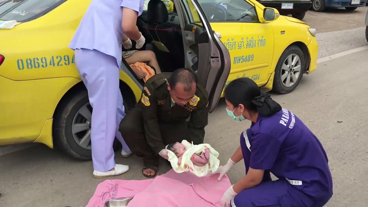 ทั้งนี้ พบรถแท็กซี่ ยี่ห้อโตโยต้า สีเหลือง ทะเบียน ทษ 5409 กรุงเทพ จอดเปิดไฟกะพริบอยู่ ที่เบาะหลังพบ นางสาวเซียมะ อายุ 32 ปี ชาวเมียนมา กำลังนอนรอการช่วยเหลือ โดยมี นายทูนรัด สามีชาวพม่าติดตามไปดูแลด้วยความเป็นห่วง