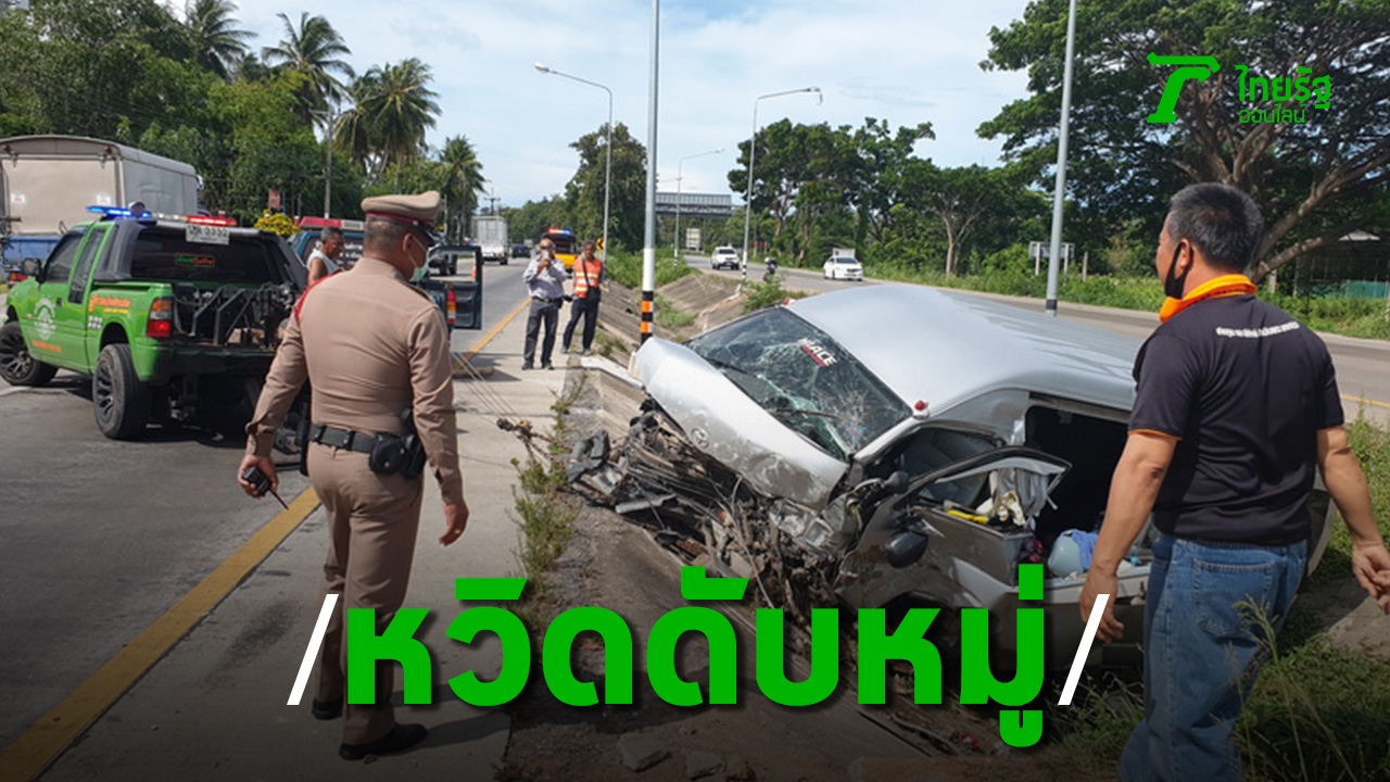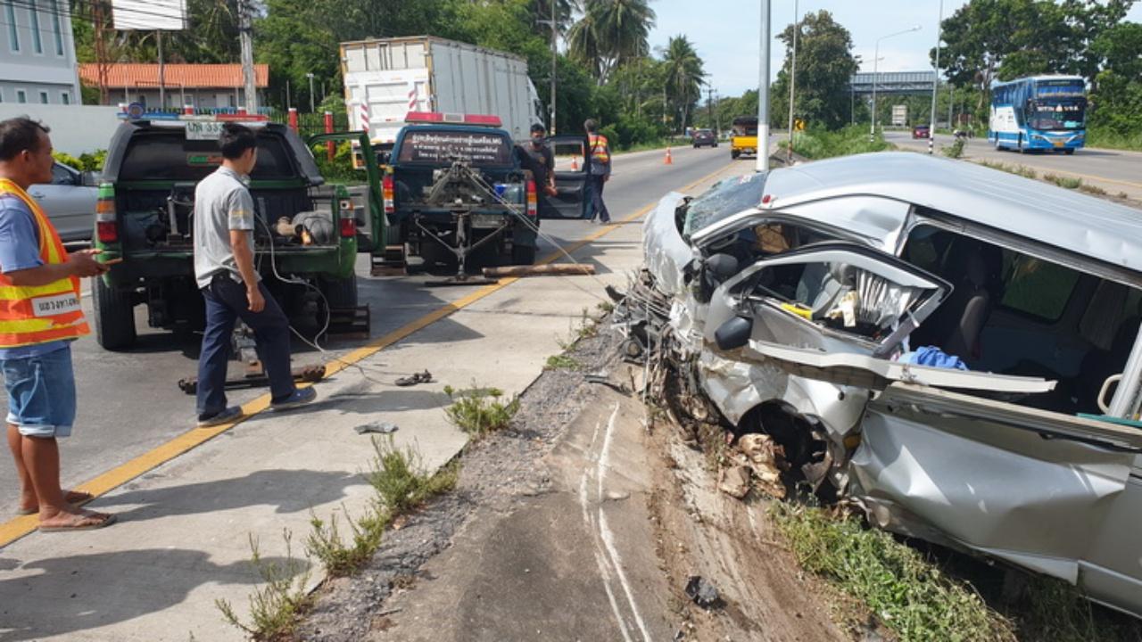 หวิดดับหมู่ รถตู้พาญาติกลับบ้านที่จังหวัดสุราษฎร์ธานี เสียหลักเฉี่ยวเสาไฟฟ้าตกร่องกลางถนน ชนคันดินเสียงดังสนั่นหวั่นไหว ส่งผลให้มีผู้เสียชีวิต 1 ราย บาดเจ็บอีก 5