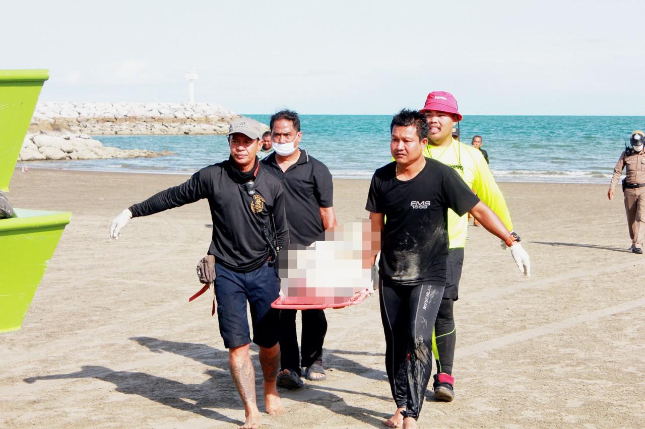 จนท.กู้ภัยพบศพหนุ่มโรงแรมที่ออกไปตกหมึกแล้วเรือล่มก่อนหายไป โดยเจอร่างลอยอยู่กลางทะเลหัวหิน ก่อนจะนำศพขึ้นฝั่งที่ท่าเรือหมู่บ้านเขาตะเกียบ ท่ามกลางความโศกเศร้าของครอบครัวที่มารอรับ