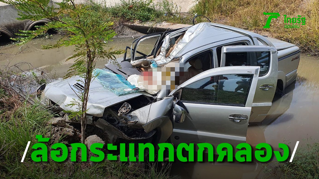 รถพ่วงล้อหลุดกระดอนข้ามเกาะกลาง อัดใส่กระบะหน้ายับพุ่งตกคลองระแวะ คนขับขาดใจตายคาที่ หนูน้อยคู่แฝด 7 ขวบสาหัสส่ง รพ.ยื้อชีวิต ตรงปทุมธานี คุมคนขับรถพ่วงสอบสวนดำเนินคดีตามกฎหมาย
