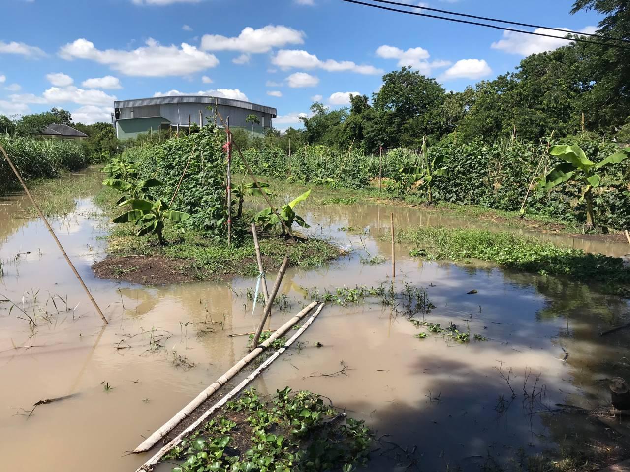 ผู้สื่อข่าวรายงานว่า ที่สวนของชาวบ้าน ต.คลองสี่ อ.คลองหลวง จ.ปทุมธานี ได้รับผลกระทบจากฝนตกหนักเมื่อช่วงเย็นวานที่ผ่านมา นานกว่า 2-3 ชม. ส่งผลทำให้เกิดน้ำท่วมในหลายพื้นที่ ซึ่งที่สวนของ นายสรรวัสร์ สิริแสงจันทร์ ผู้ใหญ่บ้าน หมู่ 1 น้ำท่วมสวนกล้วย อ้อย ผักสวนครัว บ่อกบ บ่อปลาที่เลี้ยงไว้ น้ำล้นบ่อจนทำให้ปลาและกบหนีไปจากบ่อเป็นจำนวนมาก โดยชาวบ้านได้ช่วยกันนำเครื่องสูบน้ำมาติดตั้ง เพื่อเร่งระบายน้ำออกจากสวนเข้าคลองสี่ เพื่อระบายออกคลองรังสิตประยูรศักดิ์ แต่ก็พบว่าน้ำในคลองสี่ก็มีปริมาณมากจนปริ่มคลองเช่นกัน เพราะแต่ละหมู่บ้านต่างก็เร่งสูบน้ำระบายลงคลองสี่เช่นกัน