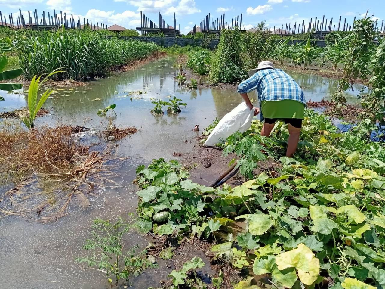 ด้าน นายสรรวัสร์ สิริแสงจันทร์ ชาวสวนผู้ปลูกกล้วย กล่าวว่า ตั้งแต่เมื่อช่วงเย็นประมาณ 4 โมงเย็น ฝนเริ่มตกและตกหนักนานถึงประมาณ 2-3 ทุ่ม ทำให้น้ำท่วมทั่วไปหมด ในสวนของตนเองที่ปลูกอ้อย กล้วย และบ่อเลี้ยงปลา เลี้ยงกบ ถูกน้ำท่วมจนหมด ตอนนี้ต้องเร่งสูบและระบายน้ำออกจากสวนให้เร็วที่สุด เพราะหากทิ้งให้น้ำท่วมขังประมาณ 3 วันจะทำให้ต้นกล้วยต้นอ้อยเกิดปัญหารากเน่าและตายได้ อีกทั้งต้องเร่งระบายน้ำออก เพราะกลัวว่าหากวันนี้มีฝนตกลงมาซ้ำอีก จะทำให้เกิดความเสียหายหนักกว่านี้อีก
