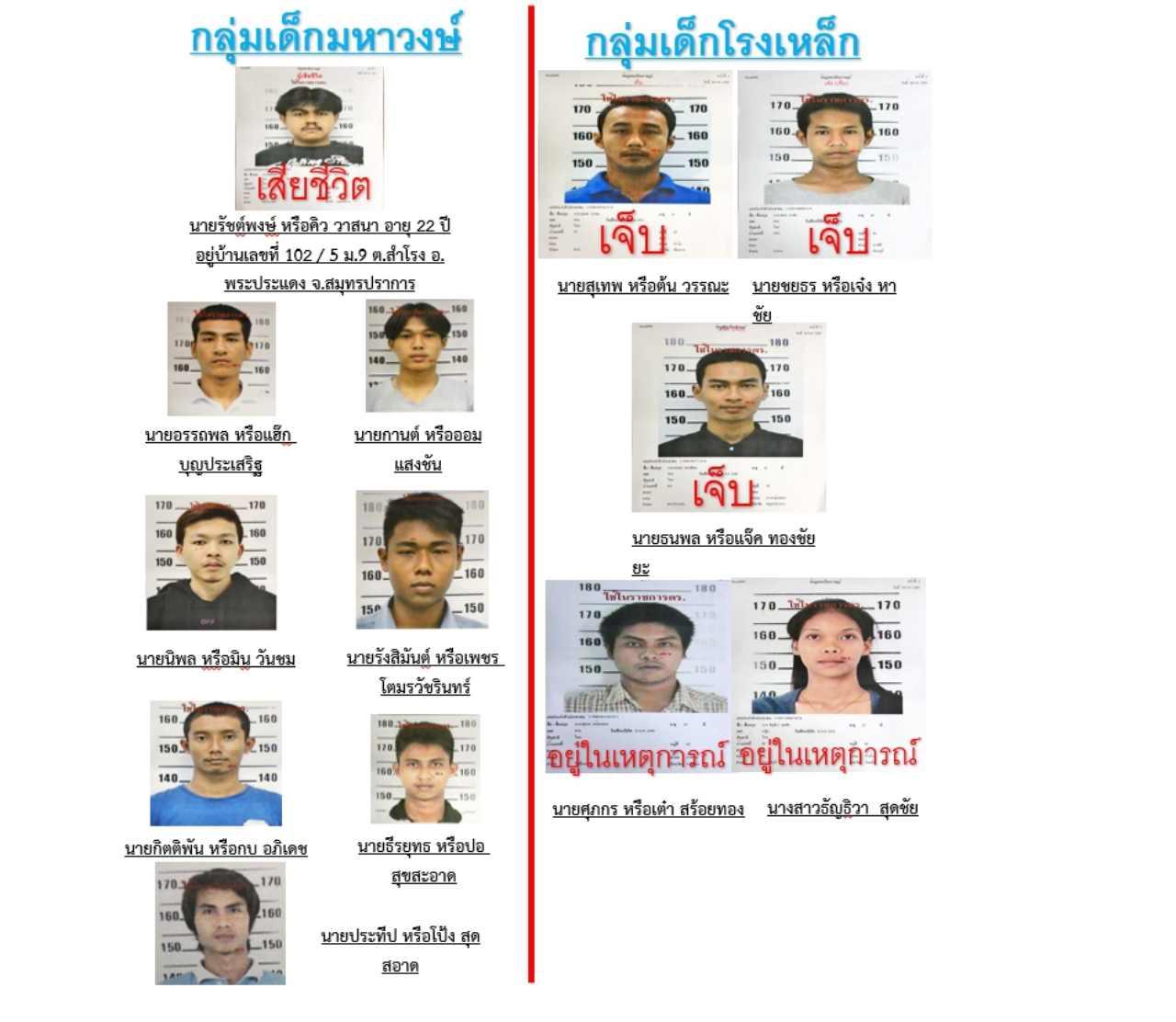 8.น.ส.บัญชลี หรือไอซ์ ฤทธิรงค์ อายุ 21 ปี 9.นายกานต์ หรือออม แสงขัน อายุ 21 ปี อยู่ระหว่างติดตามตัว