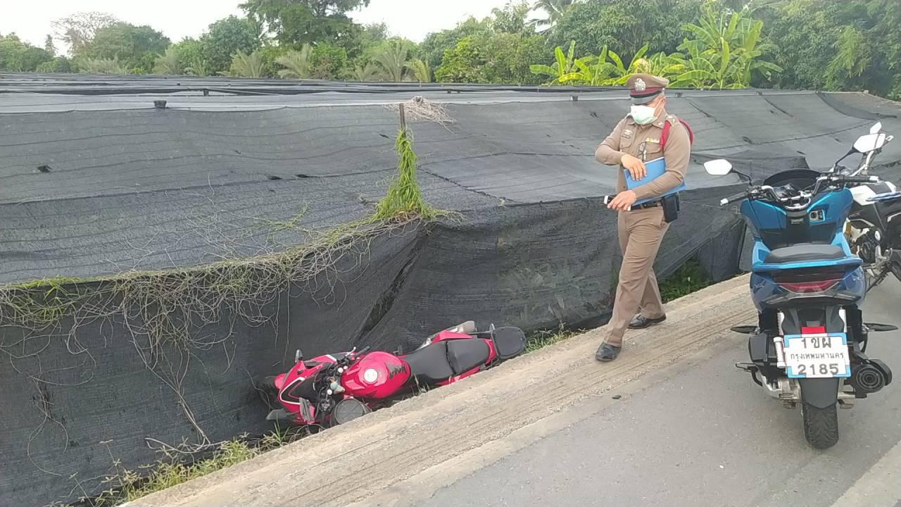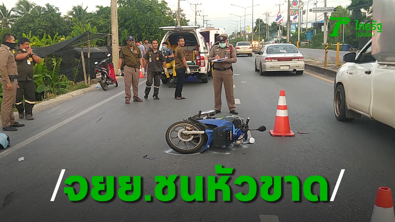 หนุ่มราชบุรีวัย 26 ควบ CBR300 มาเจอลุงวัย 51 ขี่จยย.กลับรถตัดหน้า เบรกไม่ทันชนกันบนถนนศาลายา-บางภาษี ลุงบาดเจ็บส่วนหนุ่มคู่กรณี ร่างกระเด็นศีรษะอัดเสาไฟฟ้าหมวกกันน็อกแตก จนหัวขาดตายสยอง