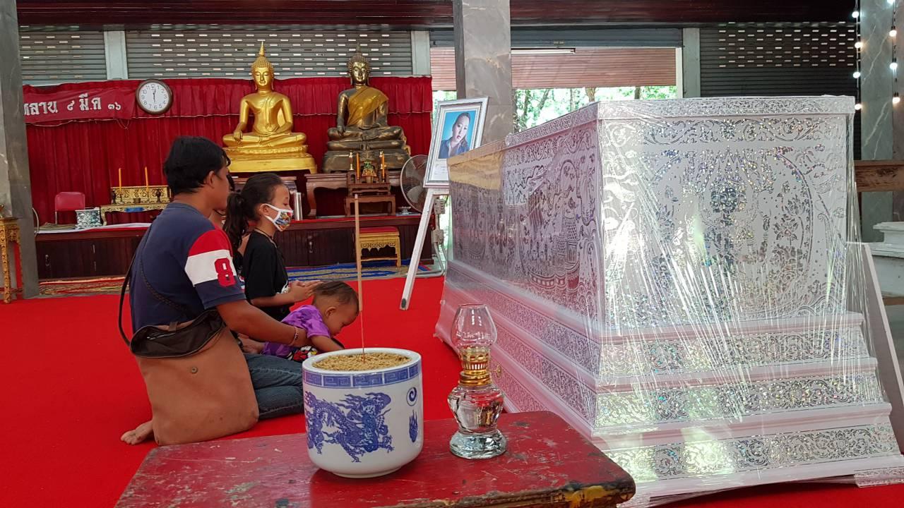 จากนั้นบรรดาญาติและบุตรสาว-บุตรชาย รวมถึงพ่อแม่ของผู้เสียชีวิตได้ร่วมกันจุดธูปเชิญดวงวิญญาณออกจากรถอีกครั้ง เพื่อให้มาอยู่ที่วัดลาดปลาเค้า ต.บางแขม อ.เมืองนครปฐม บรรยากาศเป็นไปด้วยความโศกเศร้า จากนั้นได้เปิดโลงศพพร้อมกับใช้น้ำอบประพรมที่บริเวณร่างกาย นางกาญจนา แม่ของผู้ตายจะเรียกดวงวิญญาณพร้อมกับเอ่ยว่า ศพมาถึงวัดแล้ว ไม่ต้องห่วงพ่อแม่และลูกๆ แม่จะดูแลลูกเป็นอย่างดี