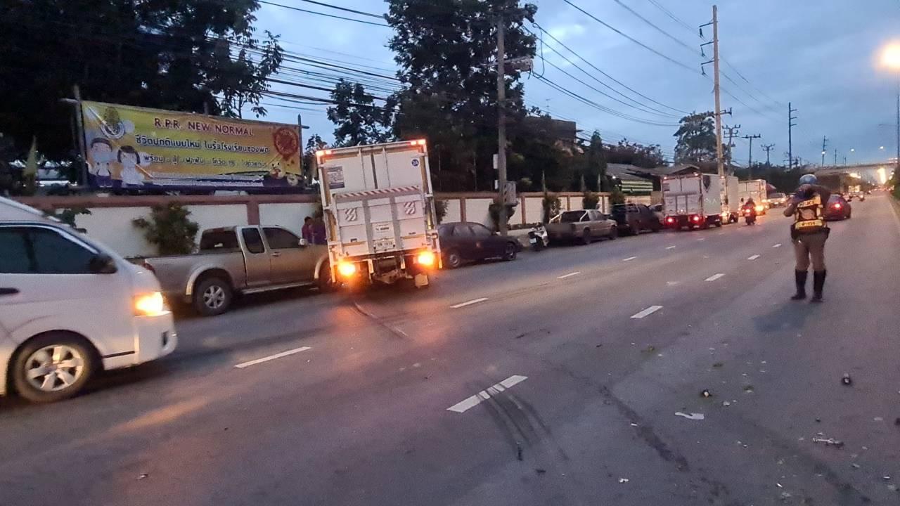 รถบรรทุก 4 ล้อ ชน จยย.บนถนนสุขสวัสดิ์ หน้าโรงเรียนราชประชาสมาสัย ฝ่ายมัธยม ทำให้คนขี่ จยย.จนถูกทับร่างแหลกเละคาถนน ตำรวจ สภ.พระประแดง เร่งสอบปมหลังภาพกล้องหน้าพบรถเครนเบียด จยย.ออกขวาจนถูกชน