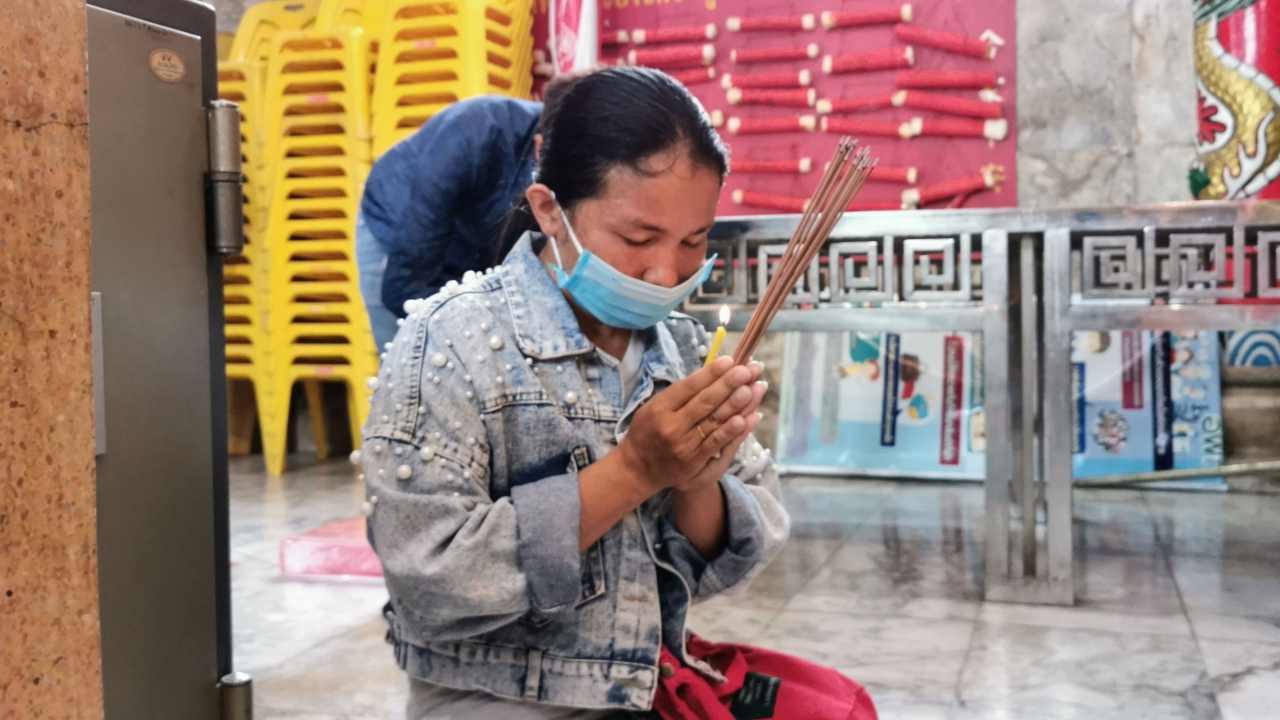"บุญเตือน" แม่ค้าหวยหายยกแผง เริ่มหมดหวังได้คืน ไปกราบไหว้และบนขนมจีนน้ำยา 1 หาบ ต่อเจ้าพ่อพระยาจักร สิ่งศักดิ์สิทธิ์ตลาดอู่ทอง ขอให้ช่วยดลใจคนที่เอาไปเอามาคืน