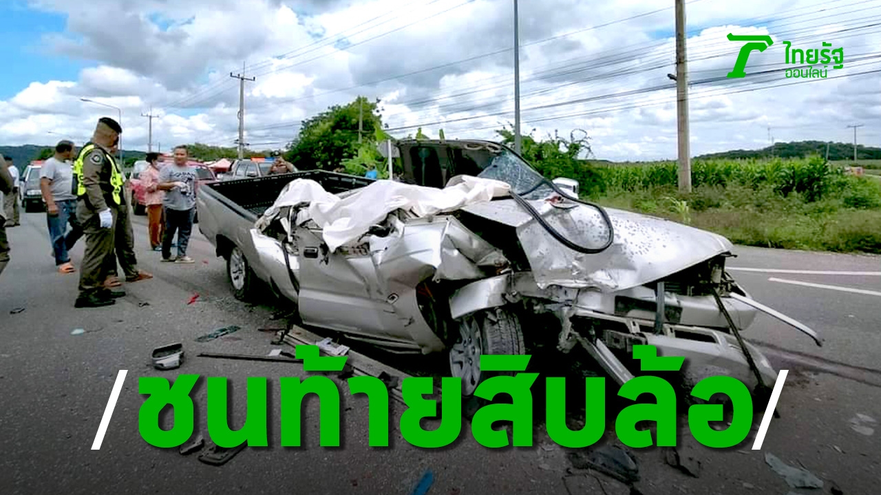 เกิดอุบัติเหตุรถกระบะพุ่งชนท้ายรถบรรทุกสิบล้อ ฝ่ายกระบะเสียหายยับเยิน มีผู้เสียชีวิต 2 ศพ และบาดเจ็บอีก 3 ราย คาดคนขับหลับใน