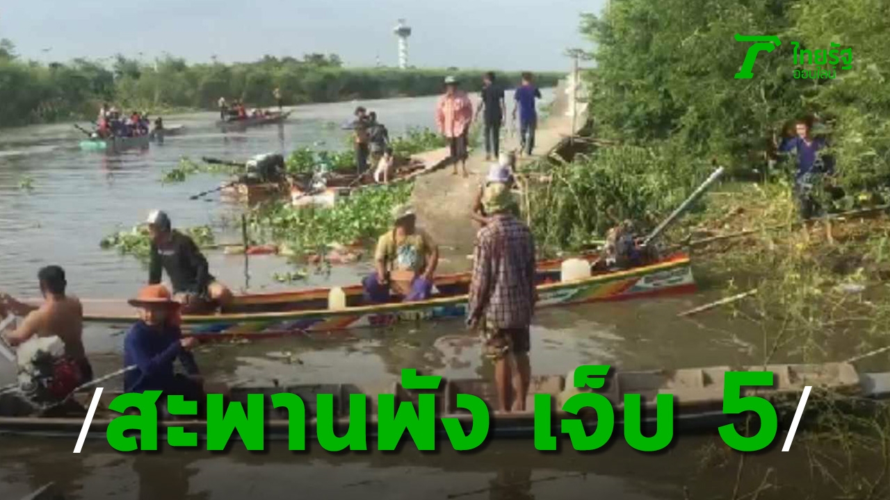 สะพานคอนกรีตเสริมเหล็กริมคลองหนองหูเห่าที่บางเสาธง รับน้ำหนักไม่ไหว หลังมีชาวบ้านขึ้นไปยืนเชียร์เรือติดเครื่องที่จัดแข่งในคลอง ดีใจกระโดดโลดเต้น ทำสะพานพังลงมาทับคนในเรือที่จอดอยู่ด้านล่าง ได้รับบาดเจ็บ 5 คน