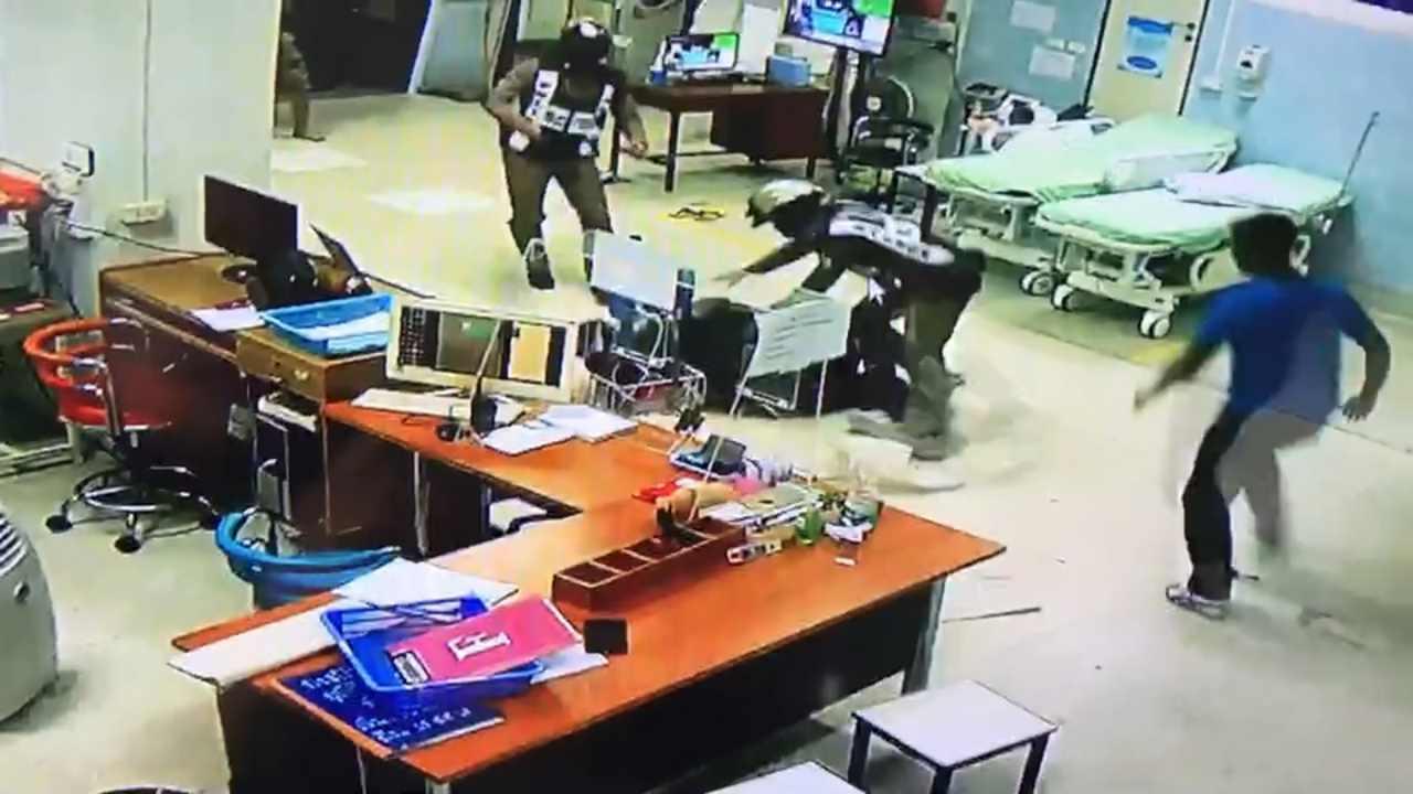 วัยรุ่นเลือดเดือดเมืองเพชร มาเยี่ยมเพื่อน ถูกแทงสาหัสนำส่ง รพ.พระจอมเกล้า ไปเจออริที่คาดว่าเป็นคนแทง ถูกตีหัวแตกนั่งรอทำแผล ทนไม่ไหว ฮือเข้ารุมยำ ทั้งพยาบาล คนป่วยหนีกันวุ่น ต้องแจ้งตำรวจมาระงับเหตุ